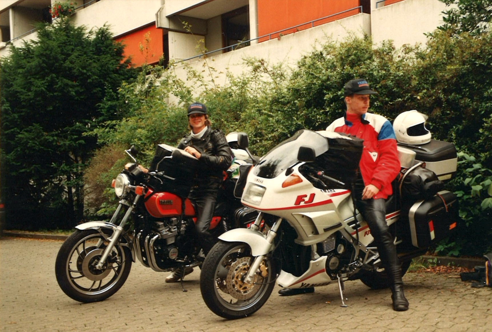 … entfährt es mir als Wolfgang mit seiner bis oben hin bepackten FJ 1200 auf meinen Parkplatz rollt. Naja, zugegeben recht viel besser sieht meine XJ 550 auch nicht aus. Ich bin nervös wie ein kleines Kind zu Weihnachten – Wolfgang geht es wahrscheinlich nicht viel besser, aber zumindest versteckt er es geschickter. Zeit Abschied zu nehmen und los geht´s – zumindest bis zur ersten Tankstelle, wo ich den ersten Kilometerstand notiere: 51986 – Erlangen