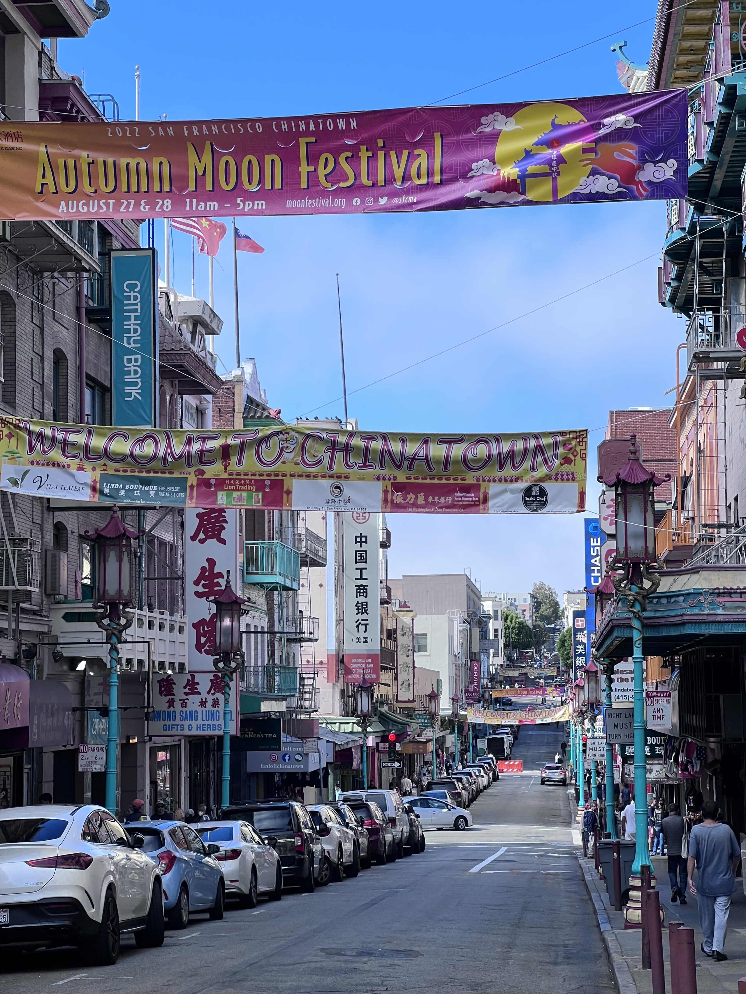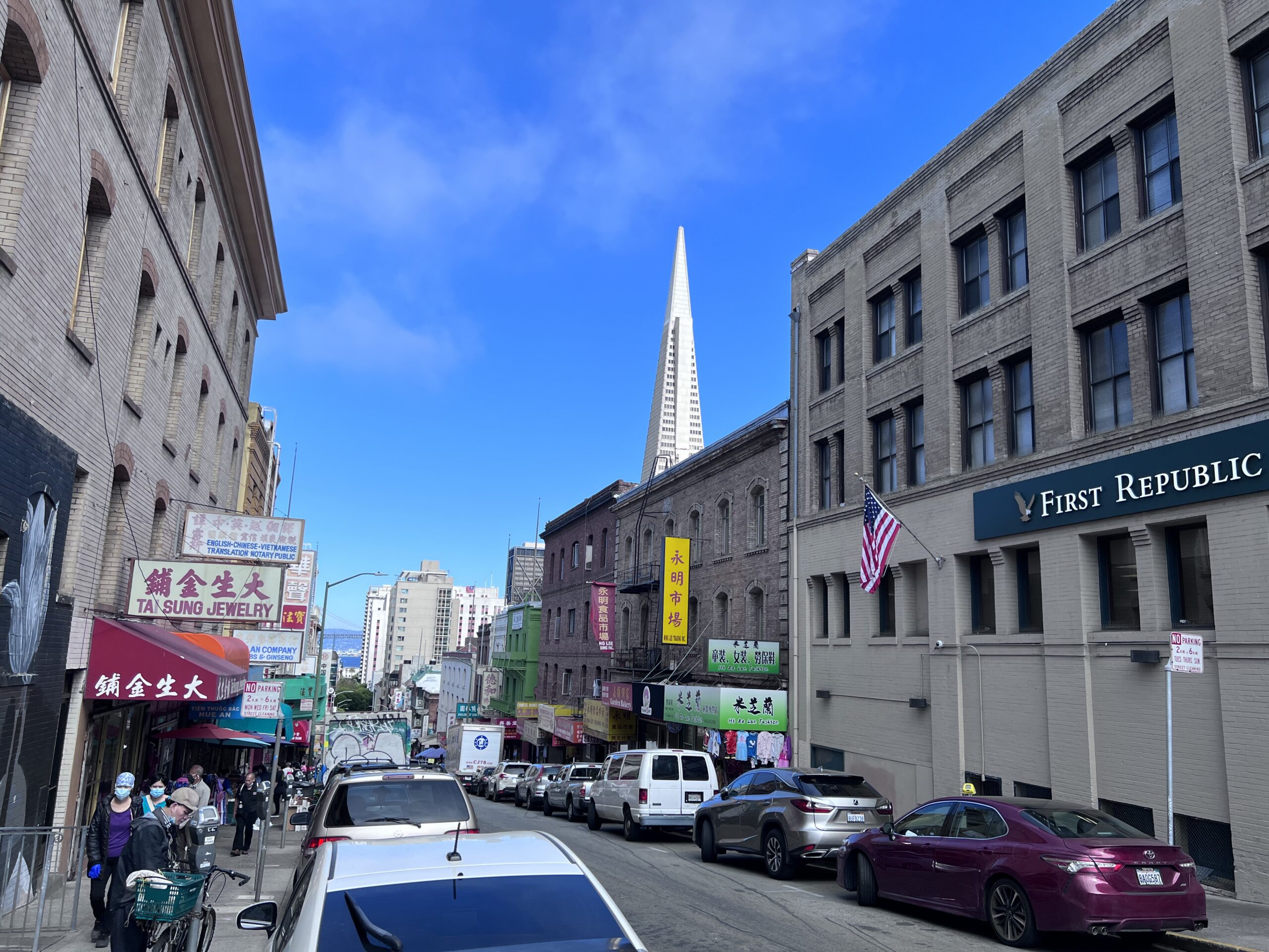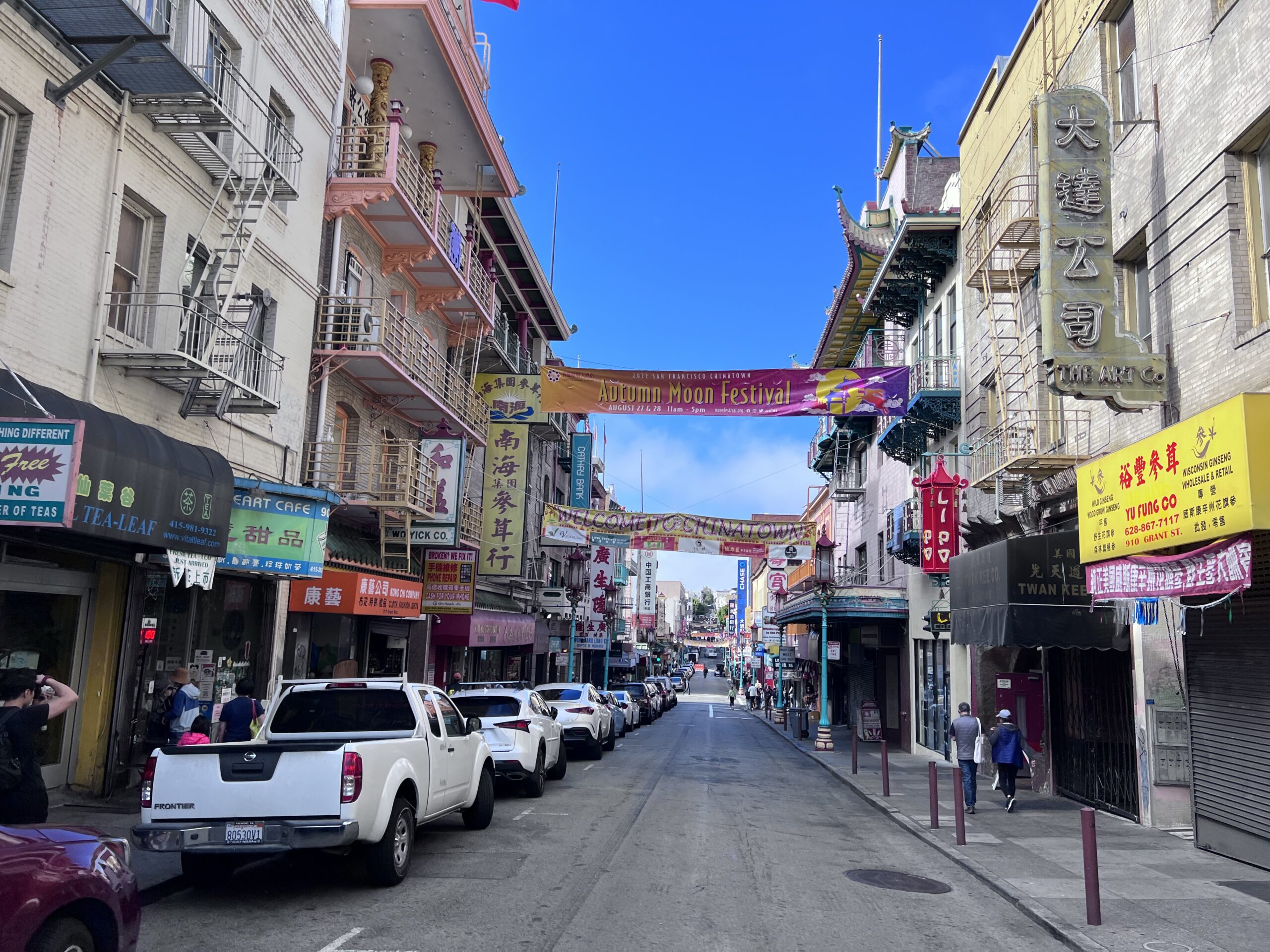 Die Zimmer riechen etwas streng, sind aber sauber und die Lage ist ziemlich perfekt, um die Stadt zu erkunden. Die erste Fahrt mit der „Muni“ bringt uns nach Chinatown, wo wir uns zuerst eine Prepaid SIM Card holen und auch gleich konfigurieren lassen. Wir sind wieder online und checken auf Google gleich das beste China-Restaurant – hungrig sind wir alle, nach der langen Anreise. Anschließend treiben wir uns noch ein wenig in Chinatown herum und kaufen die wichtigsten Lebensmittel für die nächsten Tage.