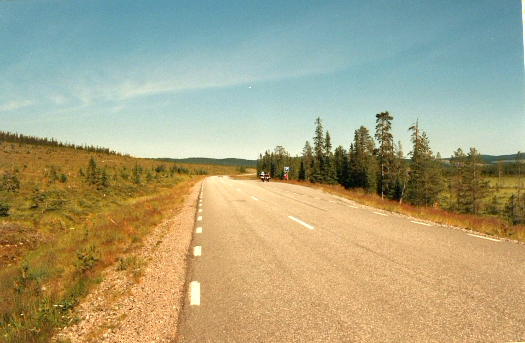 Nach all der Aufregung konnte es nun also weitergehen. Die Vegetation hat sich inzwischen ziemlich gewandelt, wir sind in Schwedisch-Lappland, das ist unverkennbar. Die dichte Bewaldung und die massiven Hügel sind einer Moor- und Weidelandschaft mit geringer Bewaldung gewichen. Die Landschaft wirkt insgesamt etwas karger, aber nicht weniger abwechslungsreich oder weniger interessant als weiter im Süden. Auch das Wetter ist nach wie vor wohlgesonnen, die Sonne strahlt von einem wolkenlosen Himmel, und Wolfgang hat Probleme, seinen Sonnenbrand loszuwerden.