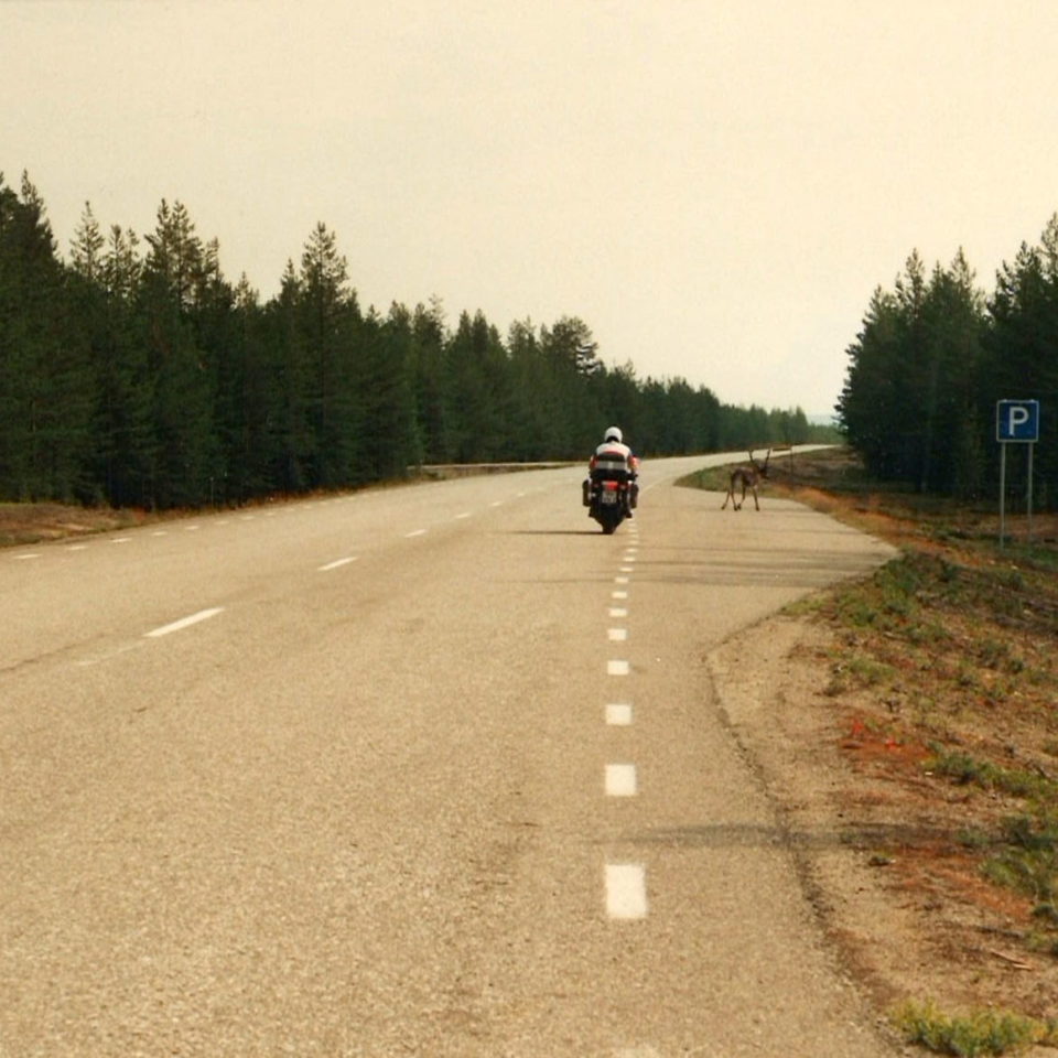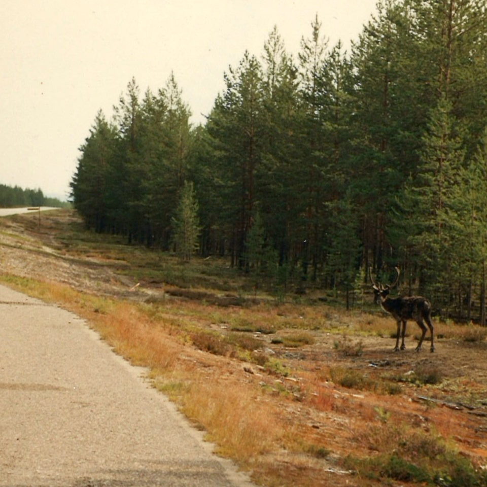 Kurz nach Vilhelmina kommt uns dann ein Geisterfahrer entgegen, und wir staunen nicht schlecht, als dieses Rentier sich uns mitten in den Weg stellt und keine Anstalten macht, auf die Seite zu gehen. Wir halten an (gezwungenermaßen) und ich nutze die Gelegenheit, um ein Foto zu machen.