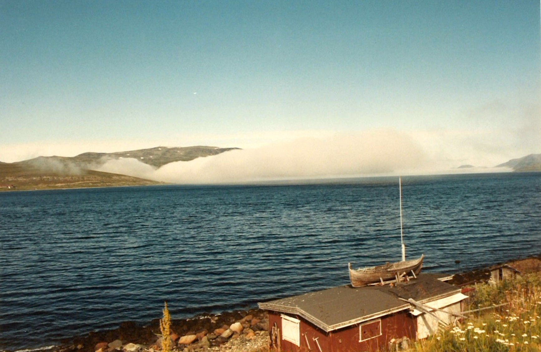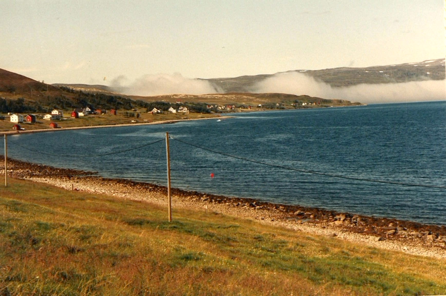 Weiter führt uns die Küstenstraße nach Hammerfest, das außer einem kleinen Tourimarkt nichts zu bieten hat. Die Strecke nach Hammerfest allerdings ist ein Augenschmaus. Die Straße führt direkt am Sørøysundet entlang. Direkt über der Wasseroberfläche an den Berghängen hängen dichte Nebelfelder – faszinierend.