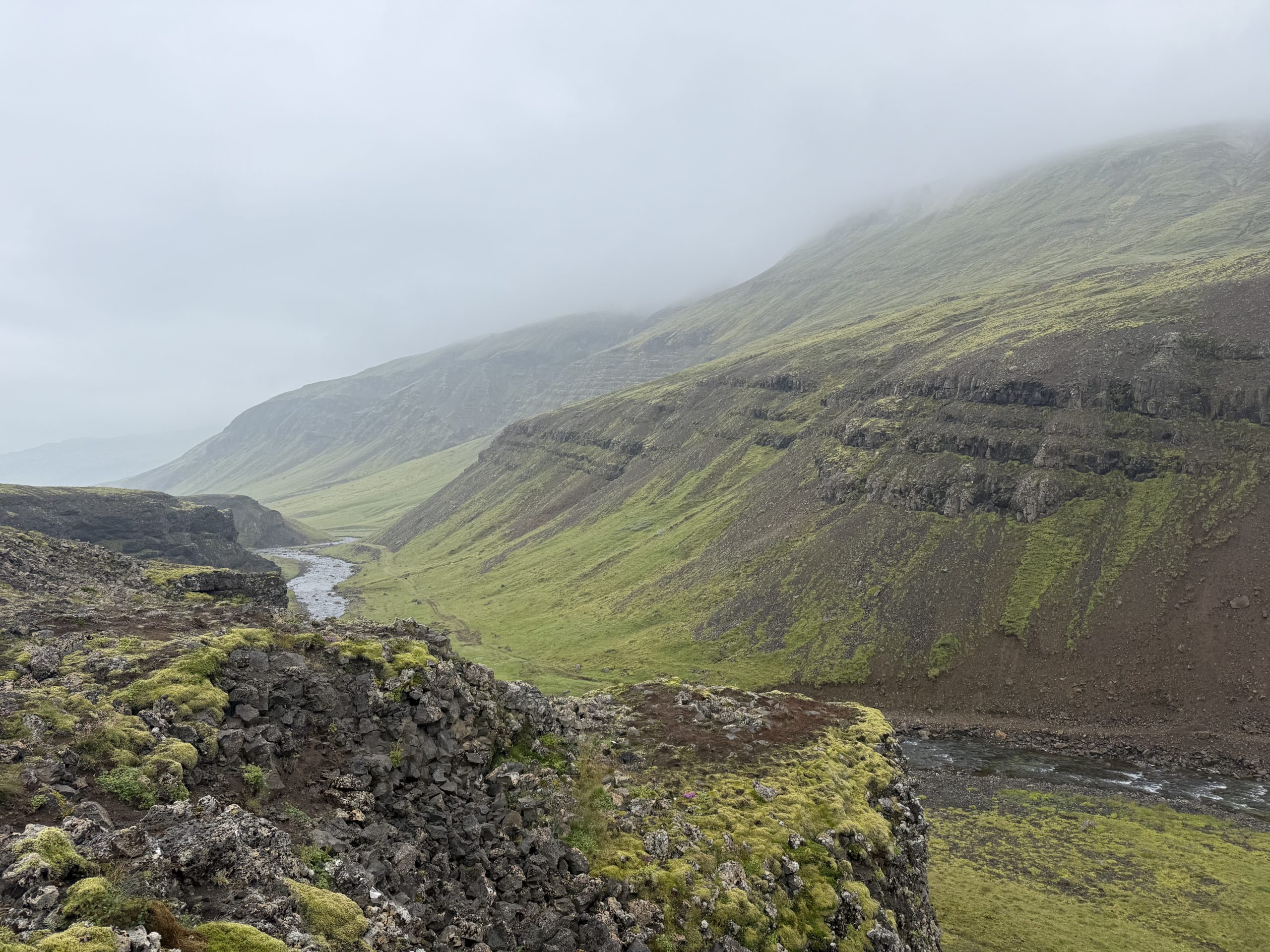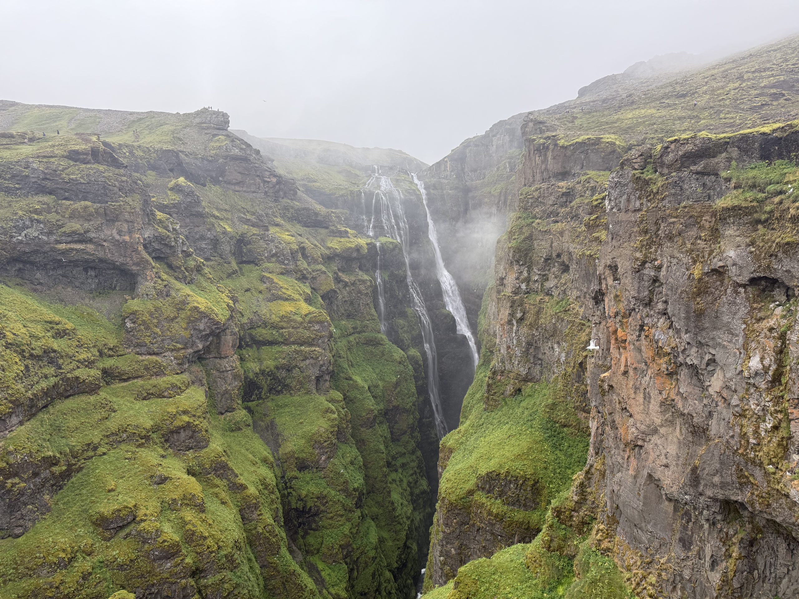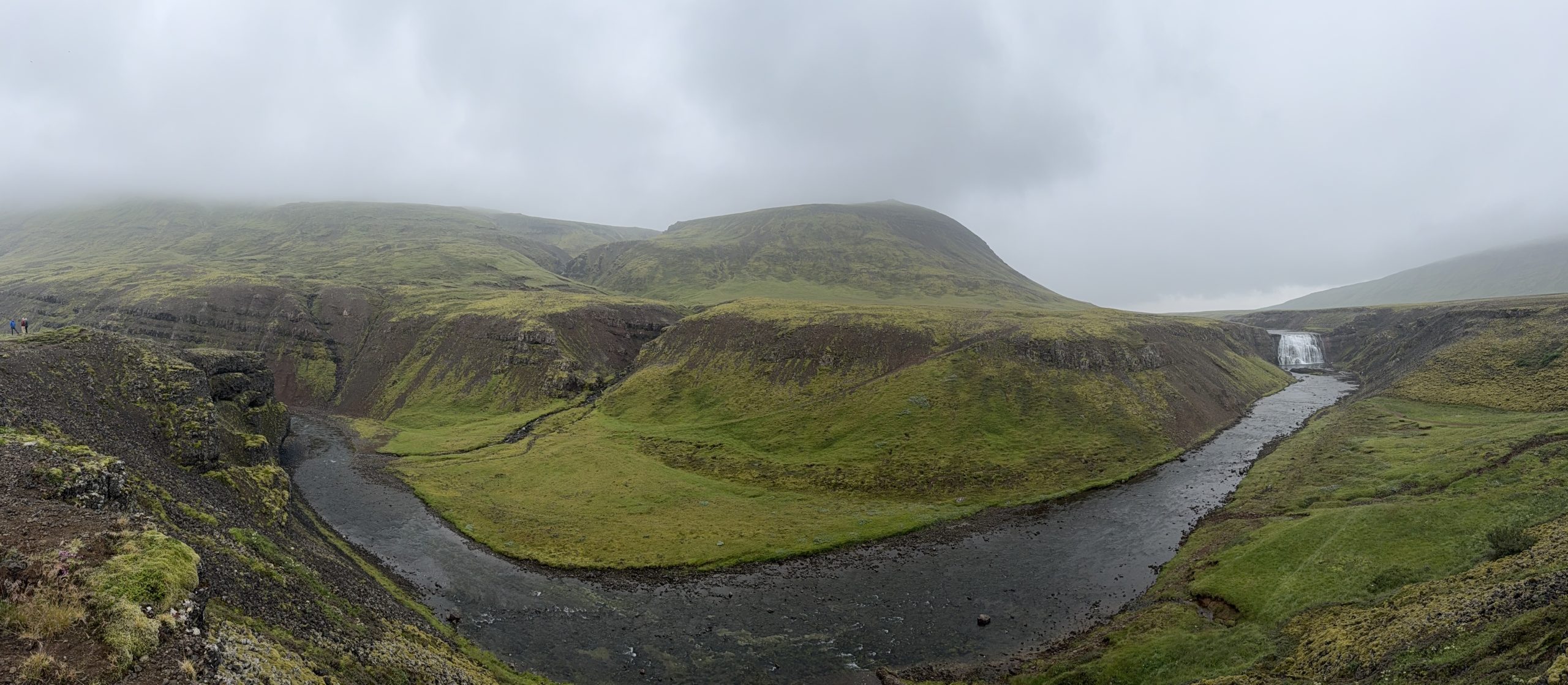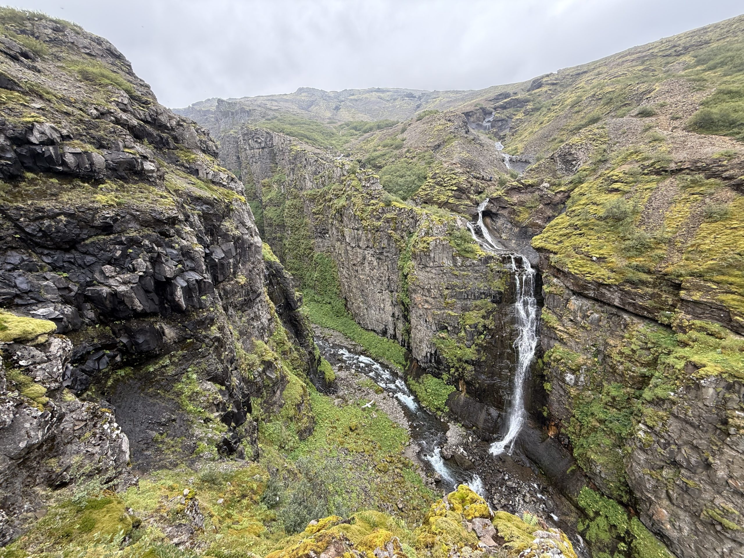 Dann aber das Highlight des Tages, wenn nicht der bisherigen Reise. Die Wanderung durch die Schlucht zum Glymur. Es ist einfach nur beeindruckend. Etwa 3 Stunden dauert die Wanderung durch und entlang dem Canyon bis zum Wasserfall. In der Schlucht nisten die Möwen und entsprechend viel Flugverkehr ist auch geboten. Gleichzeitig leuchten die schroffen Felswände teilweise in der intensivsten Grüntönen. Oben am Wasserfall angekommen heißt es dann Zähne zusammenbeißen: Der einzige Weg auf die andere Seite führt durch eine Furt über den eiskalten Bach und die 10 Meter bis zurr anderen Seite werden zum echten Härtetest. Dafür ist der Abstieg auf der Flanke über der Schlucht umso schöner.