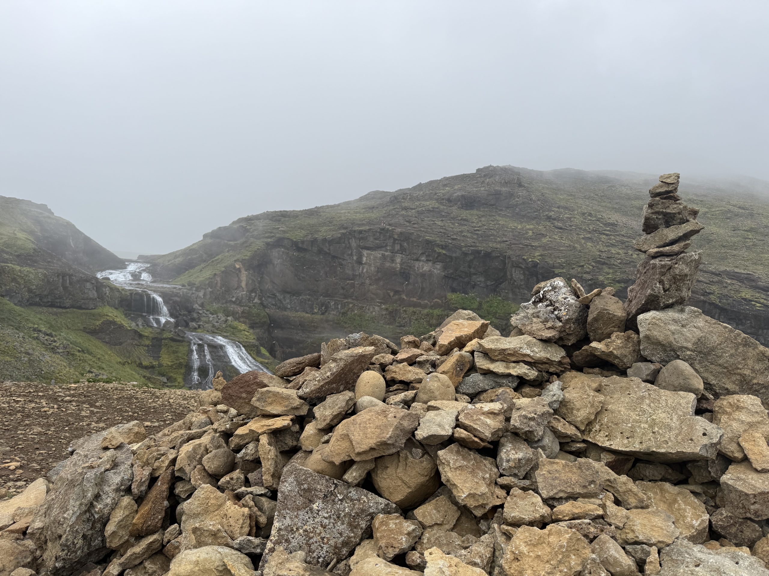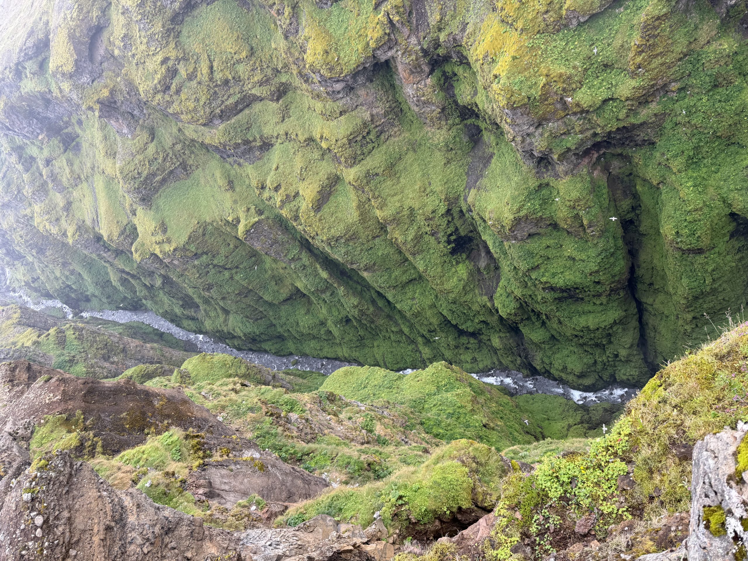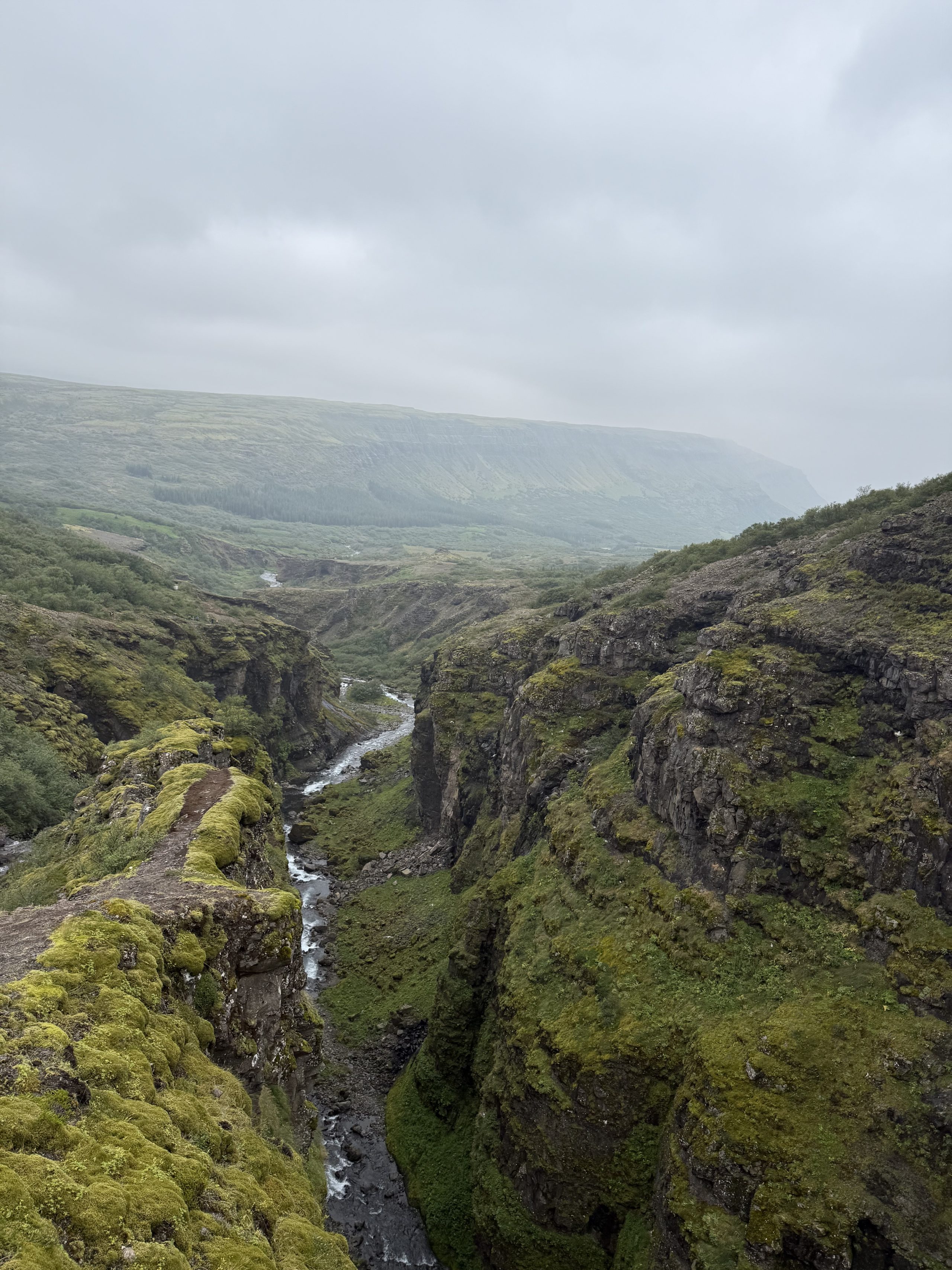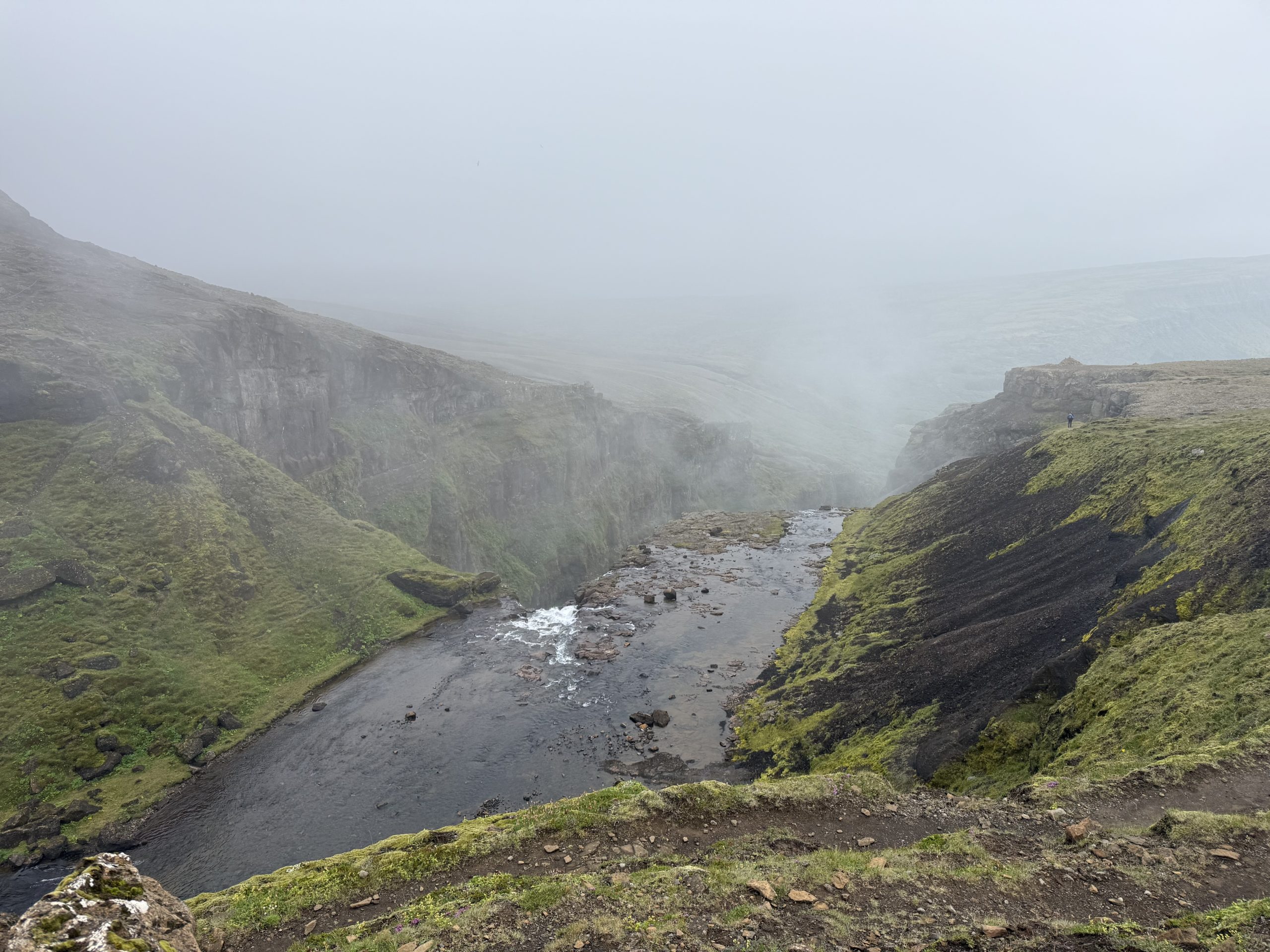 Dann aber das Highlight des Tages, wenn nicht der bisherigen Reise. Die Wanderung durch die Schlucht zum Glymur. Es ist einfach nur beeindruckend. Etwa 3 Stunden dauert die Wanderung durch und entlang dem Canyon bis zum Wasserfall. In der Schlucht nisten die Möwen und entsprechend viel Flugverkehr ist auch geboten. Gleichzeitig leuchten die schroffen Felswände teilweise in der intensivsten Grüntönen. Oben am Wasserfall angekommen heißt es dann Zähne zusammenbeißen: Der einzige Weg auf die andere Seite führt durch eine Furt über den eiskalten Bach und die 10 Meter bis zurr anderen Seite werden zum echten Härtetest. Dafür ist der Abstieg auf der Flanke über der Schlucht umso schöner.