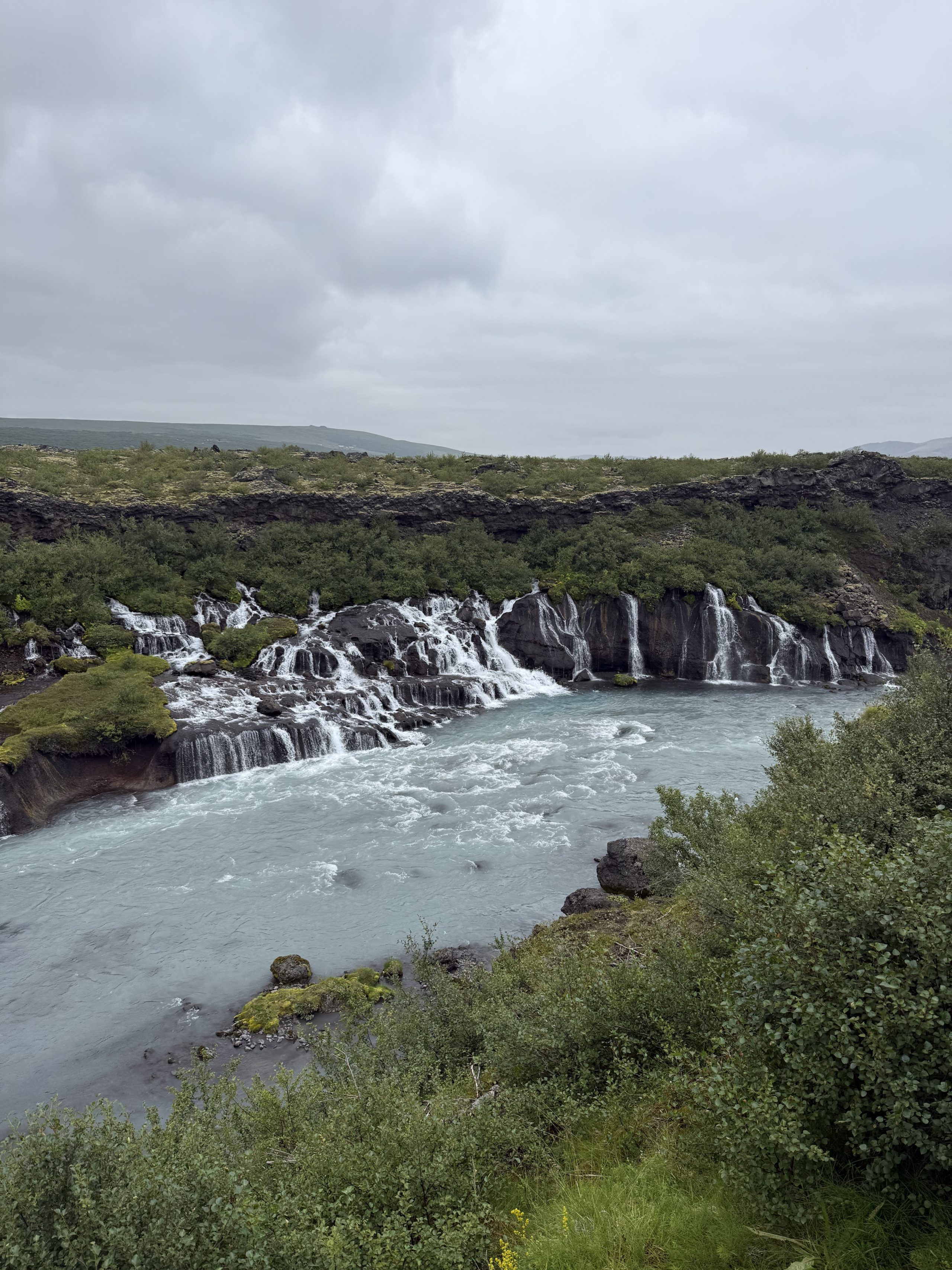 Im Anschluss an diese Wanderung fahre ich noch eine Schleife auf der 518 und sehe mir den Hraunfossar und den Barnafoss an.Die Wasserfälle sind erneut unglaublich beeindruckend. Es ist eine lange Geländekante über die unzählige Wasserfälle hinabrauschen und damit für mich eindeutig der breiteste Wasserfall, den ich bisher gesehen habe.