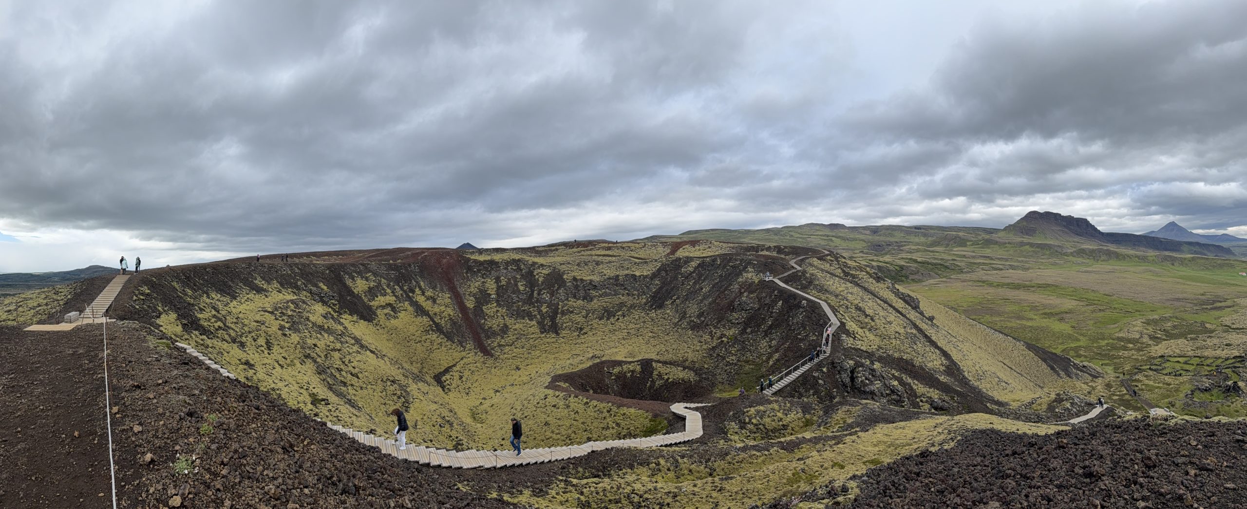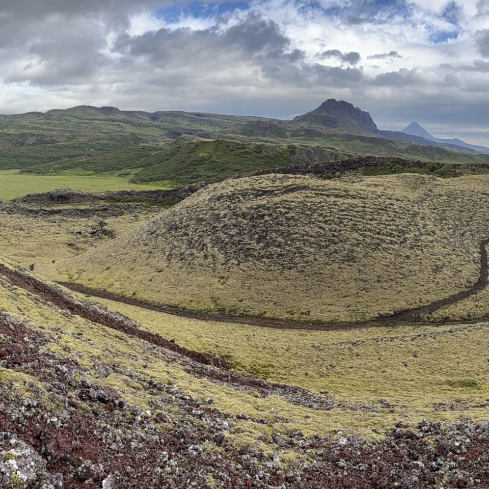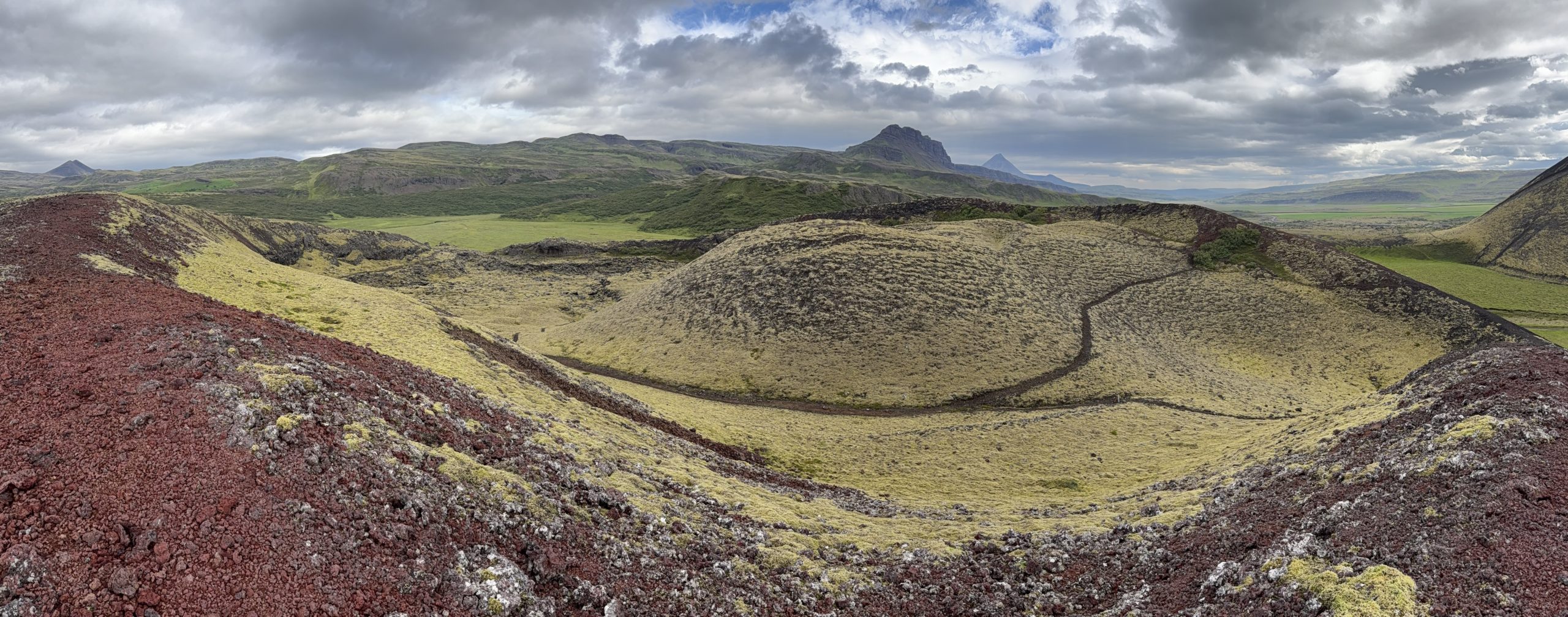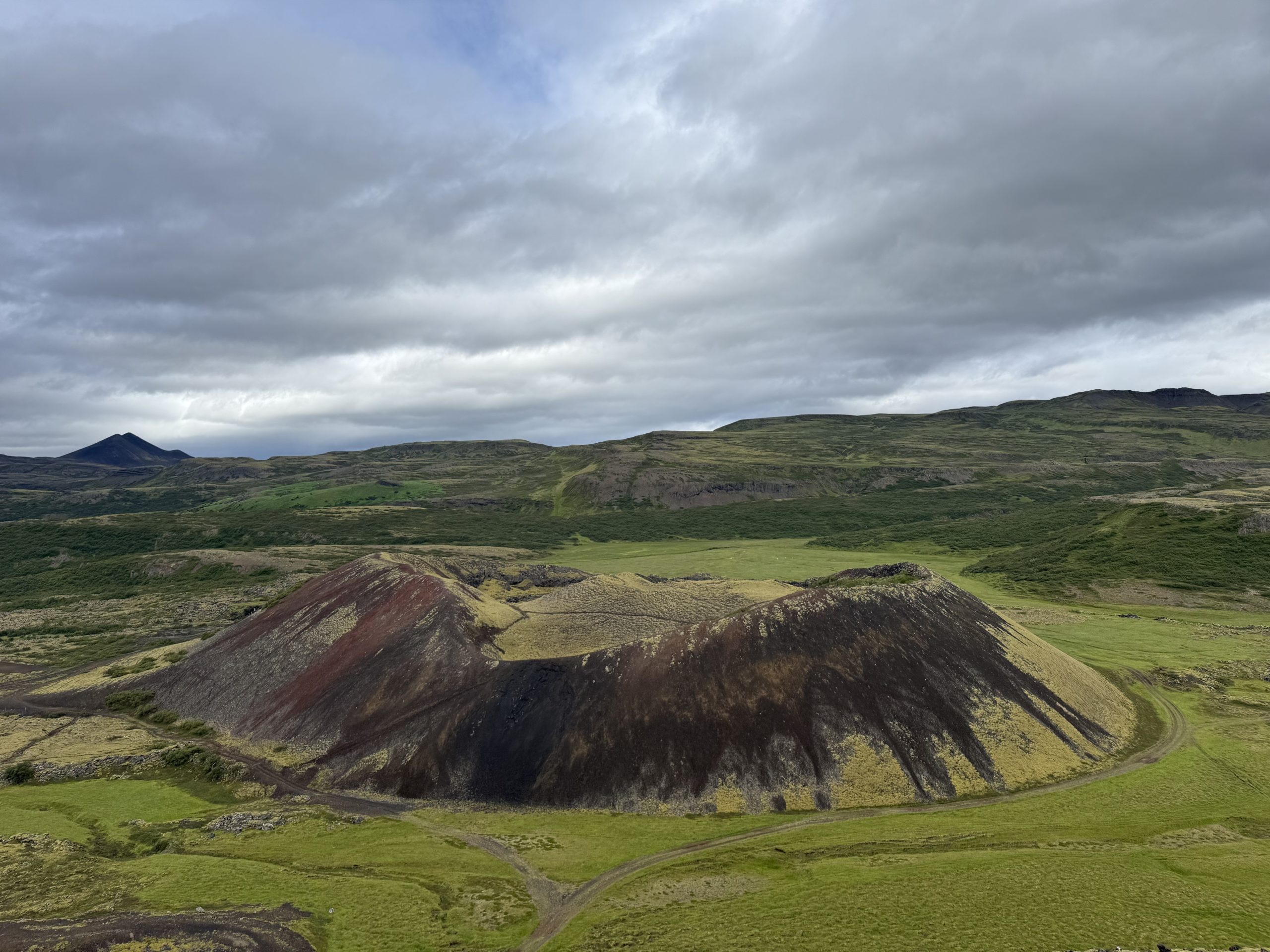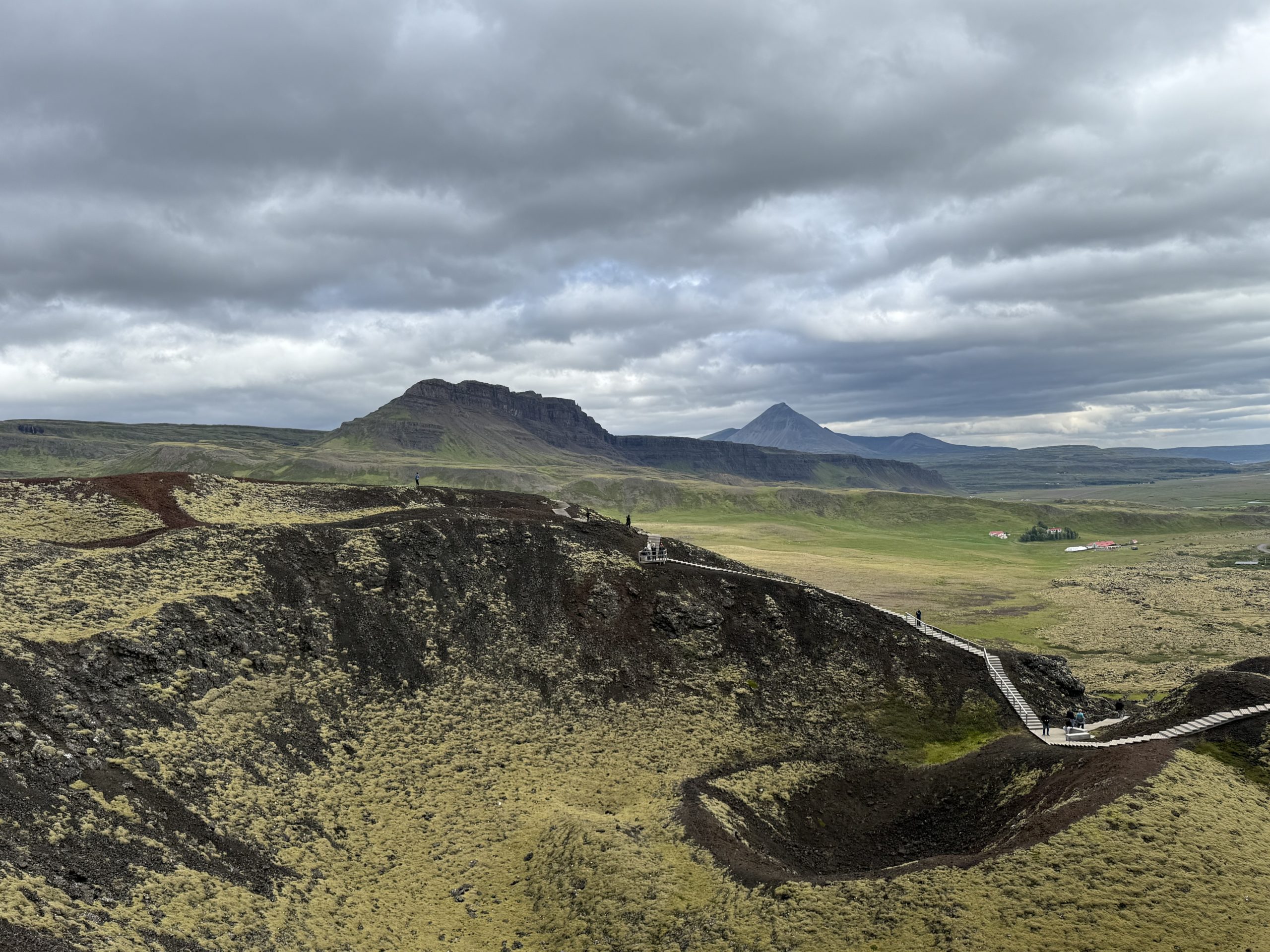 Nach einem ausgiebiogen Frühstück im Hotel Bifrost, beginnt der Tag mit einer Wanderung auf die beiden nahegelegenen Vulkane Grabrok und Grabrokargigar. Es sind zwar nur zwei kleine Krater, aber wunderschön gelegen und nachdem ich relativ früh dran bin, habe ich die Vulkanschwestern auch (fast) für mich allein.