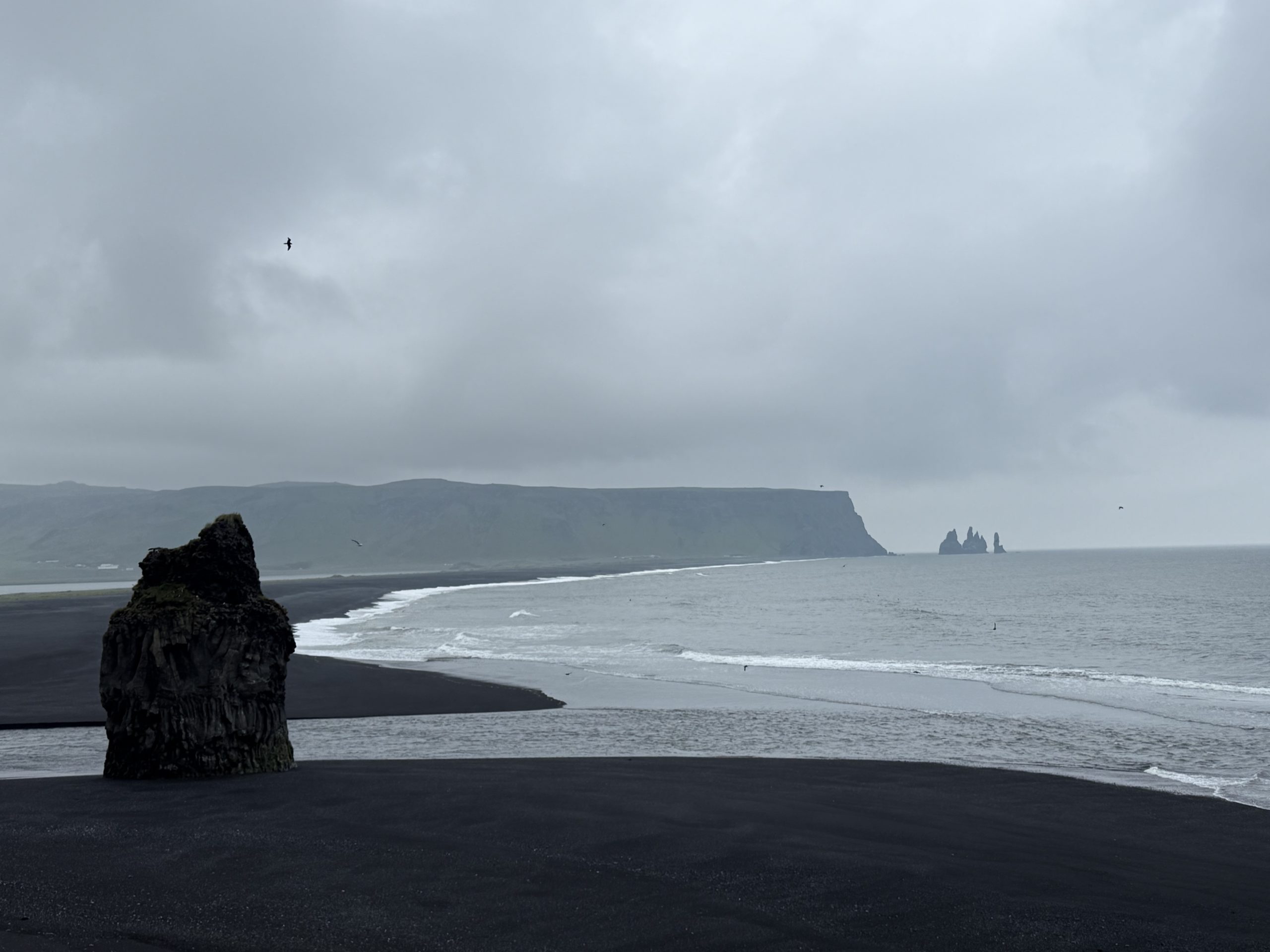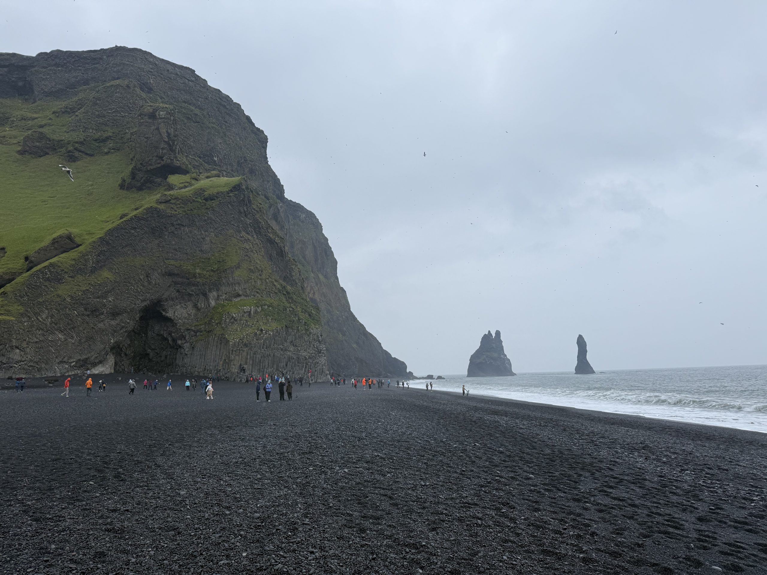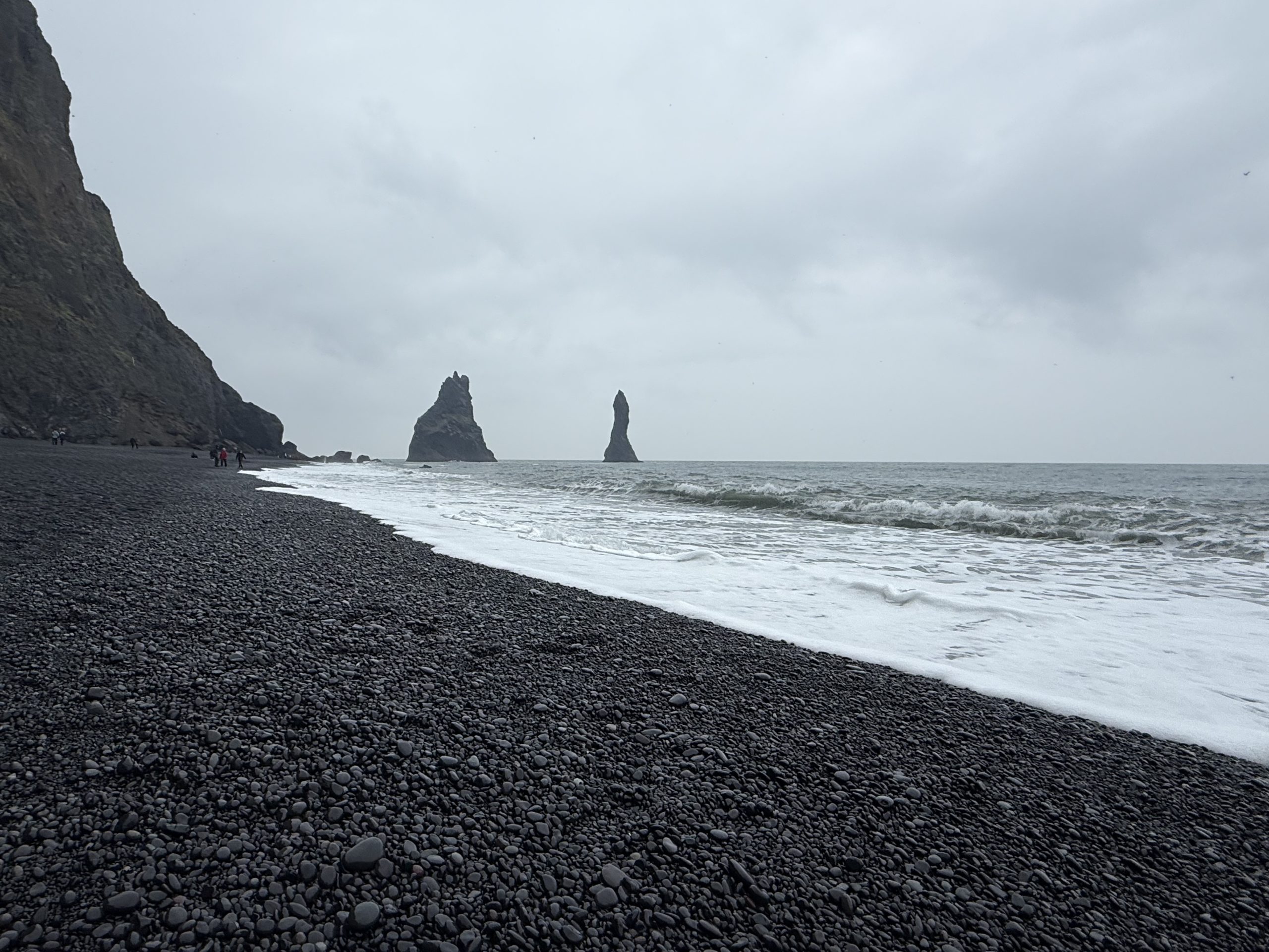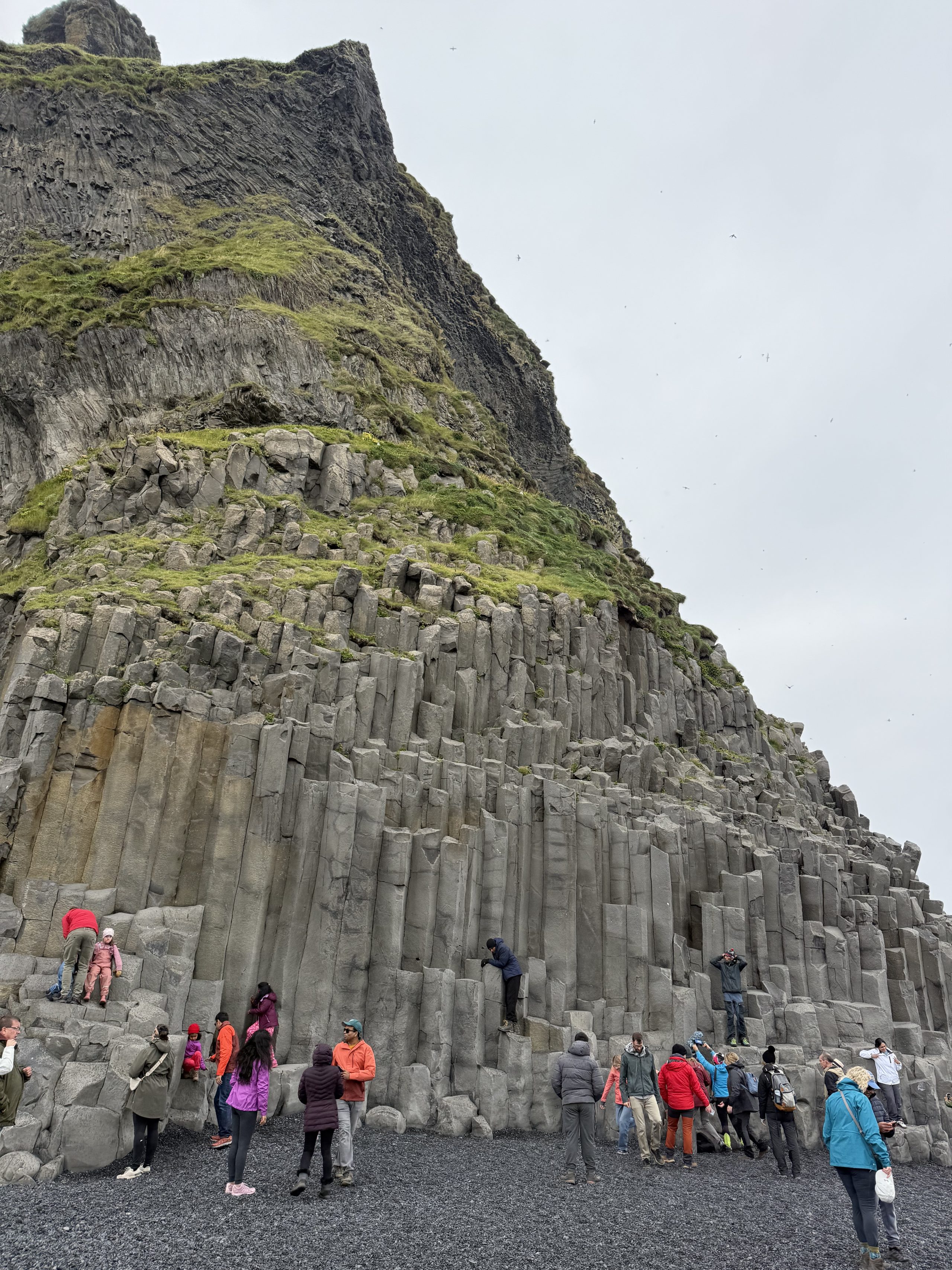Aber erst als ich nach Reynisfjara komme, laufe ich dann tatsächlich auf dem endless black beach und beobachte das bunte Treiben der vielen Besucher an den Basaltklippen und am Strand – was aufgrund der Brandung gar nicht ungefährlich ist und ich mich deshalb strikt an die Anweisungen auf den Warntafeln halte.