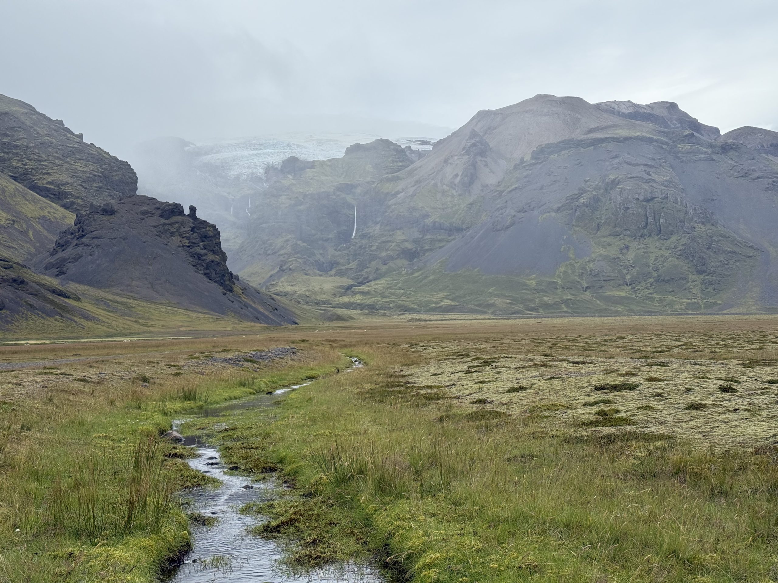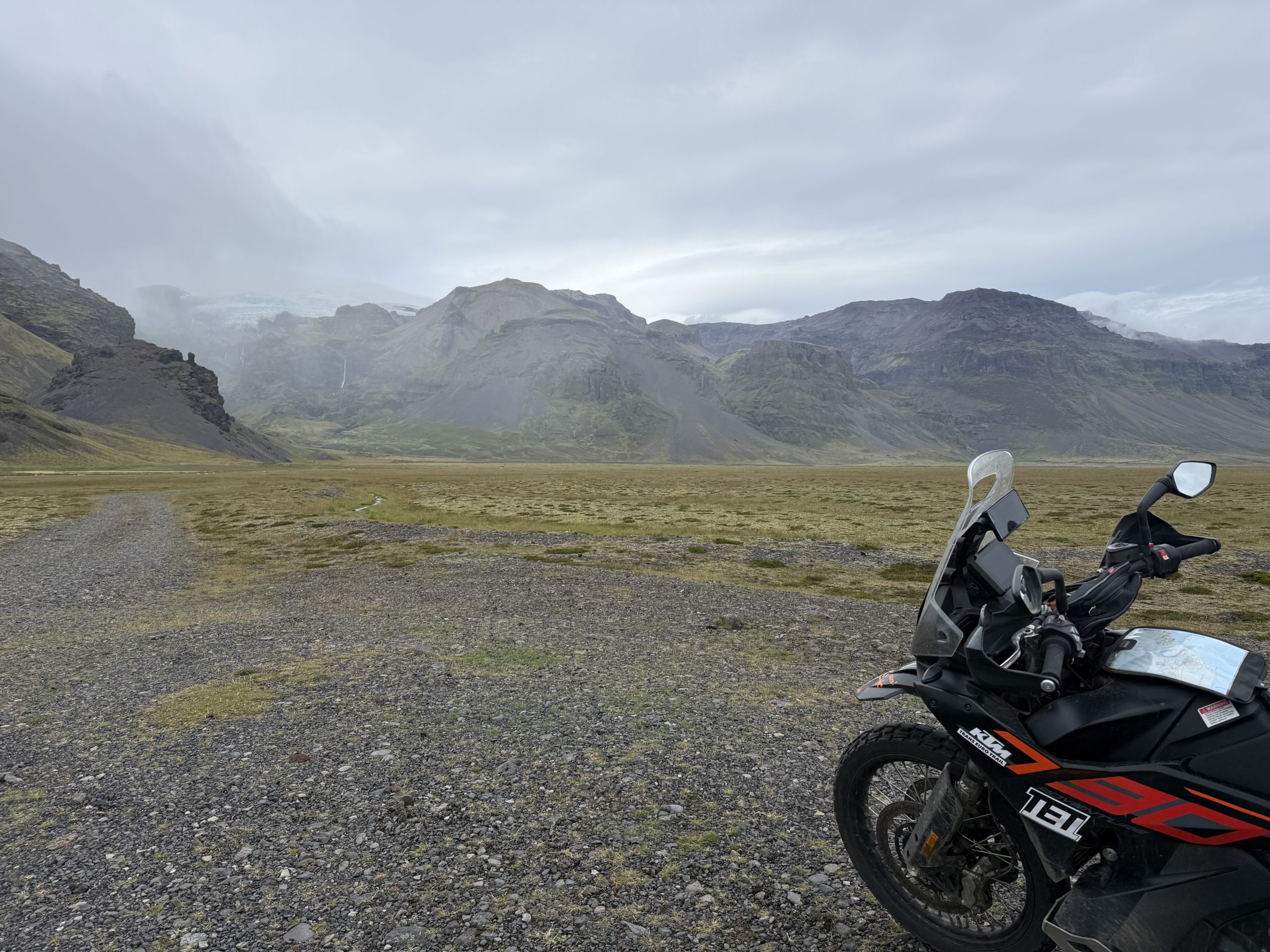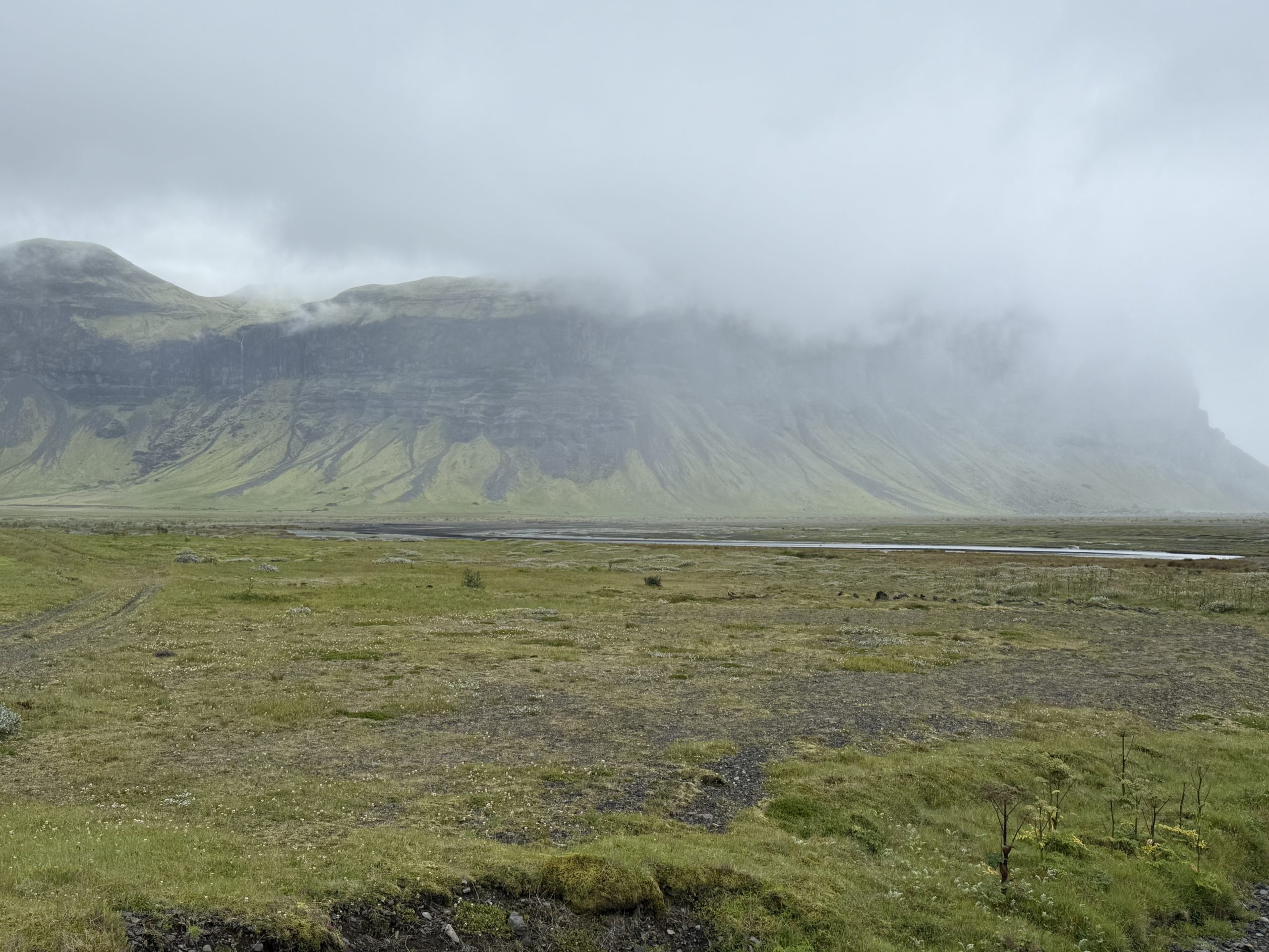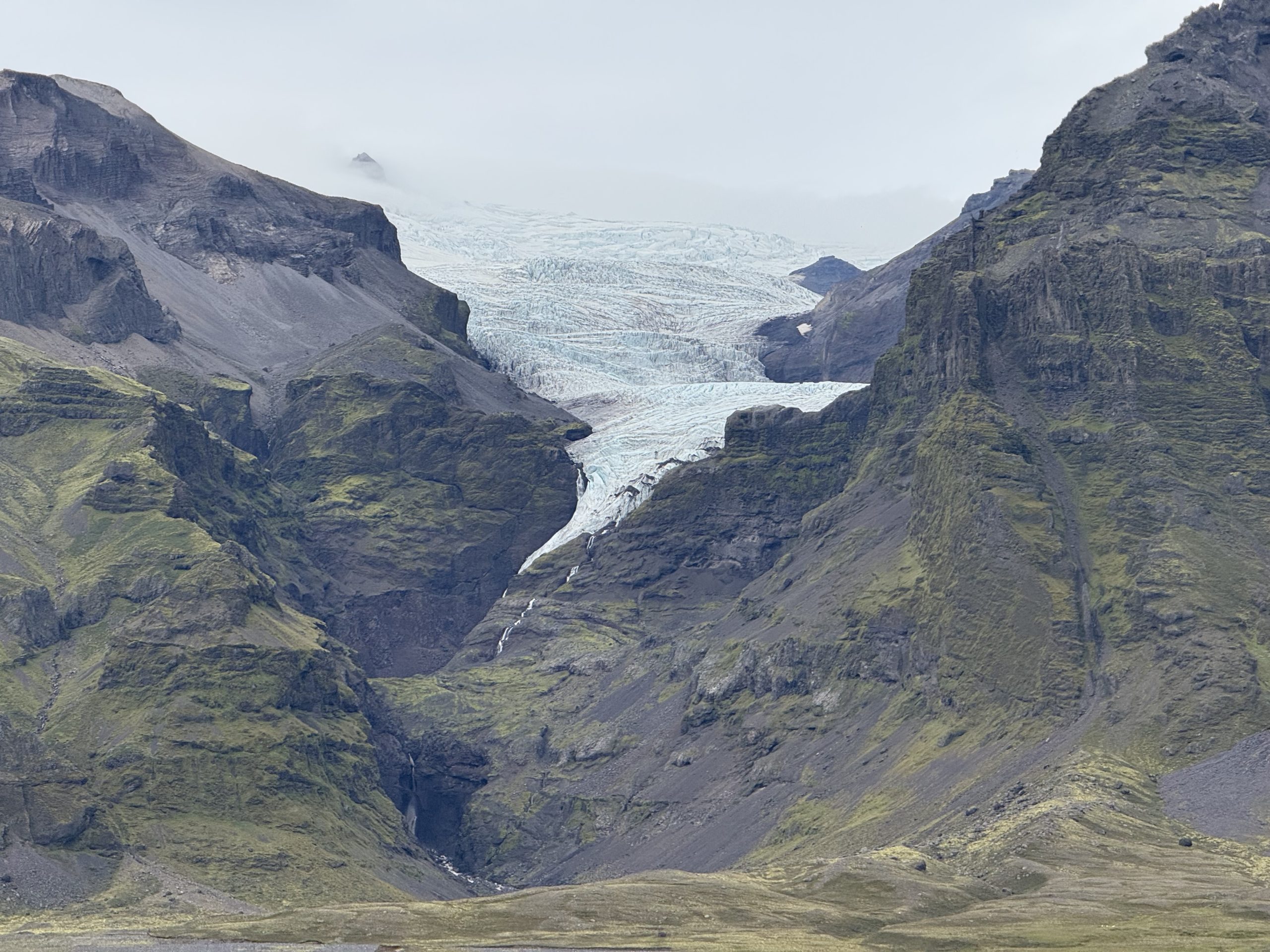Ein kleiner Abstecher auf der 221 bringt mich bis zur Gletscherzunge des Solheimajökull, einem Nebengletscher des großen Myrdalsjökull. Im regnerischen Dunst sieht die Szenerie noch dramatischer aus und ich bin begeistert.