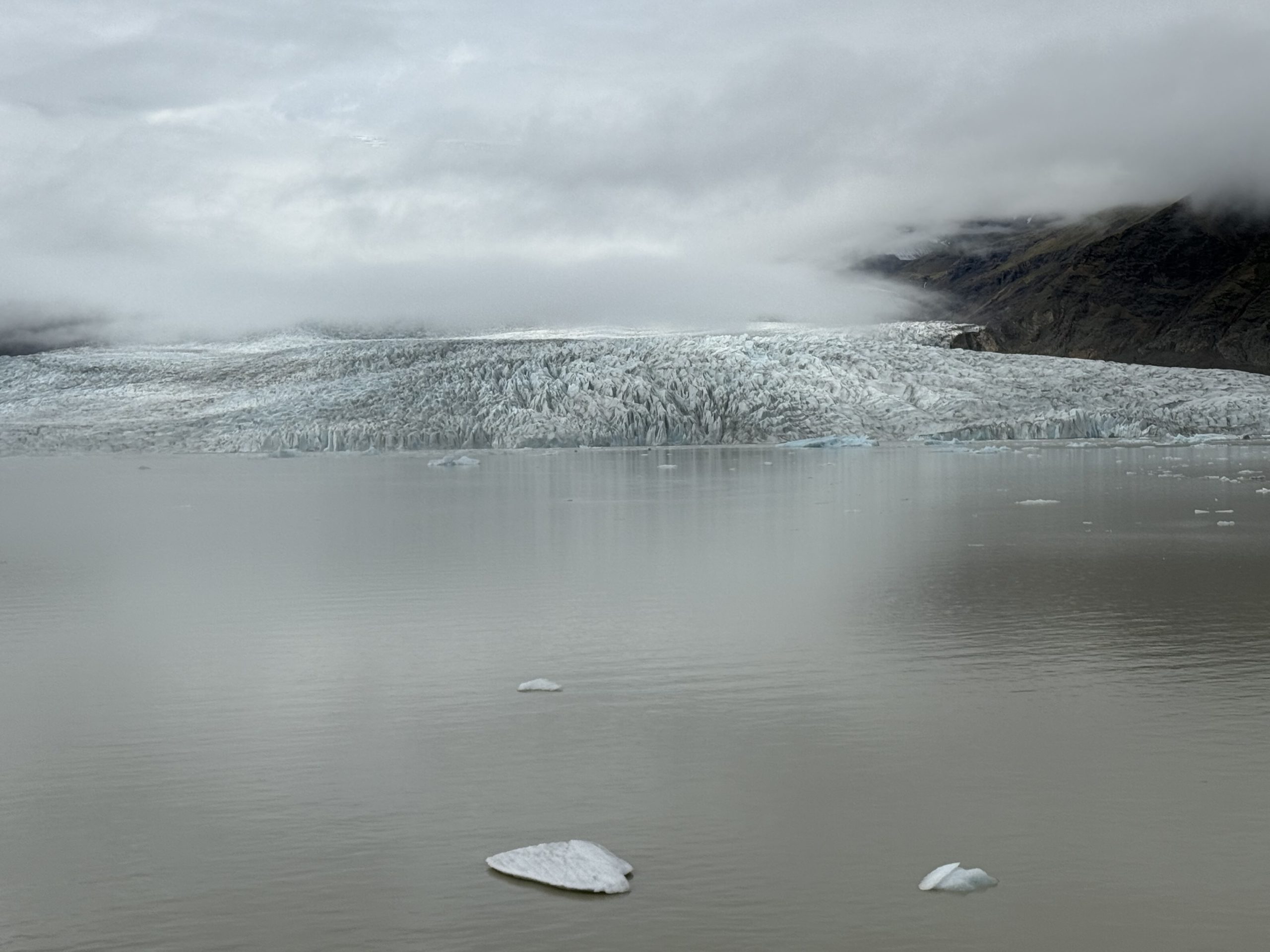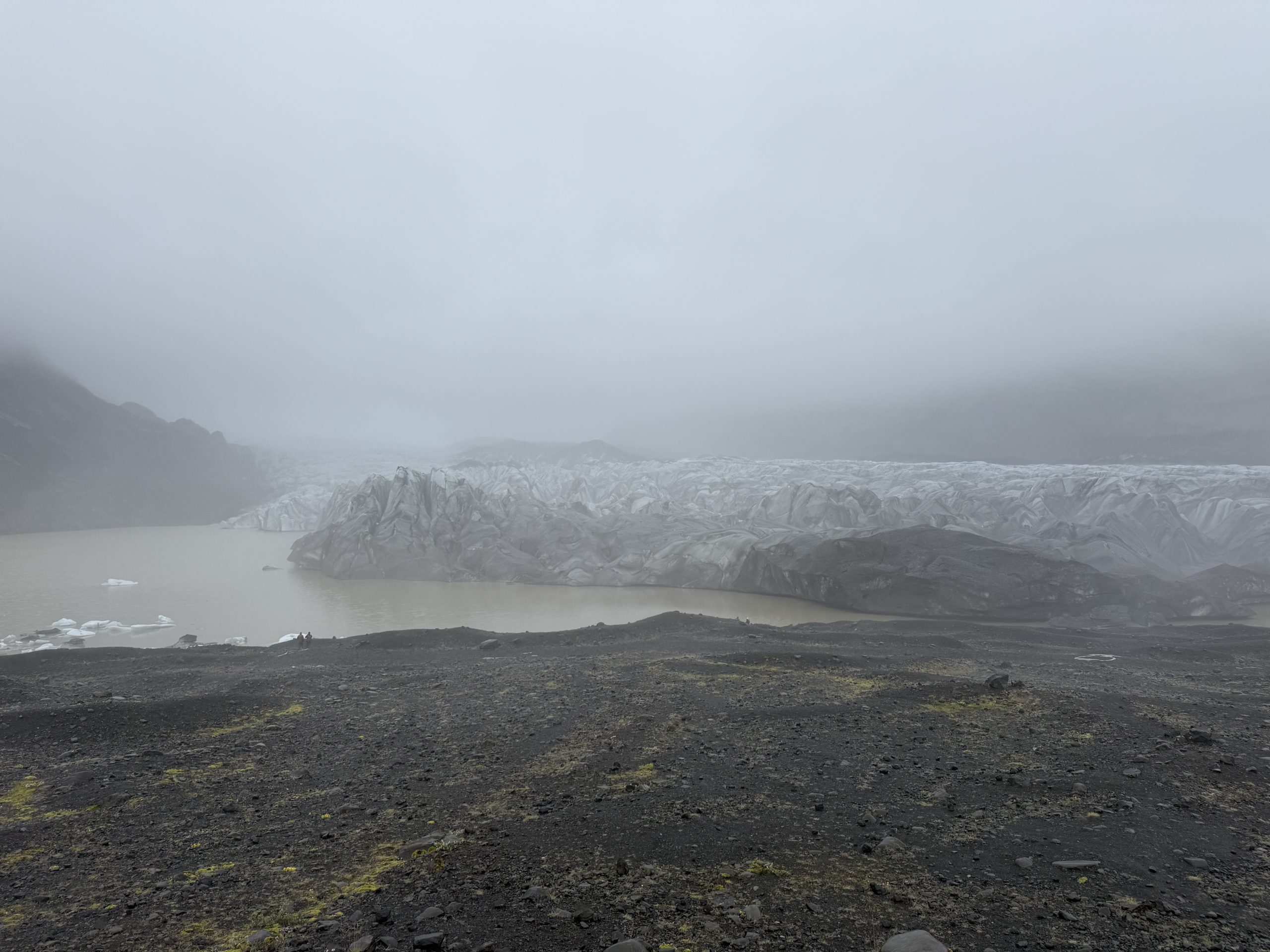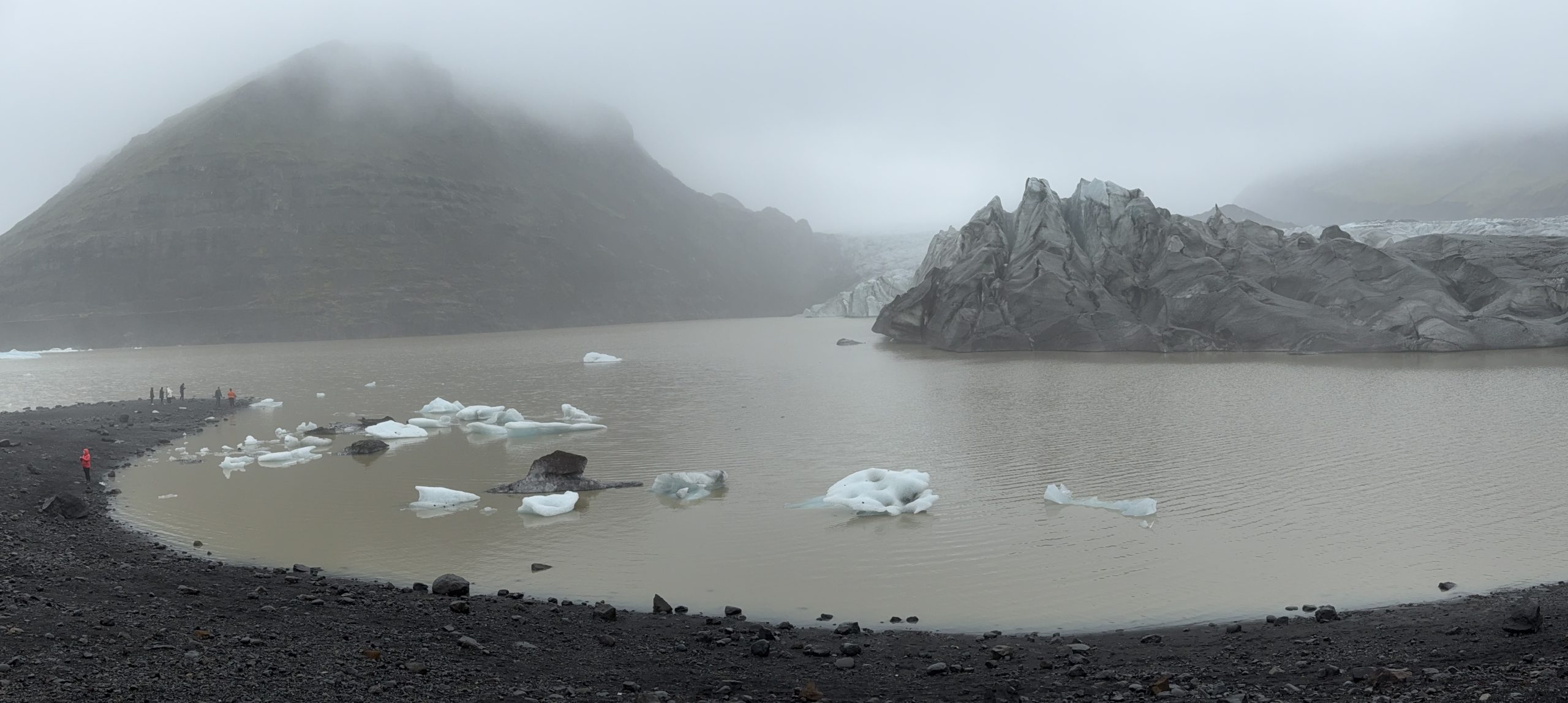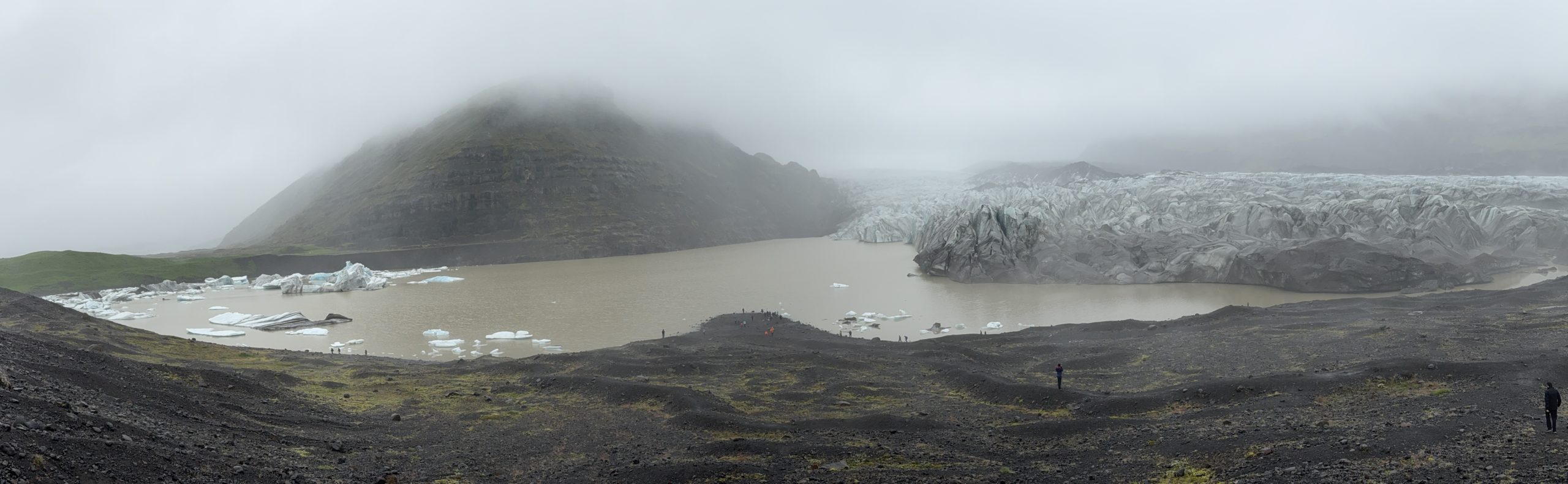 Da wird es beim zweiten Stop schon spektakulärer. Ein kurzer Fußmarsch vom Parkplatz bringt mich zum Svinafellsjökul, einem Nebengletscher, der aber wunderschön in einen See bricht.