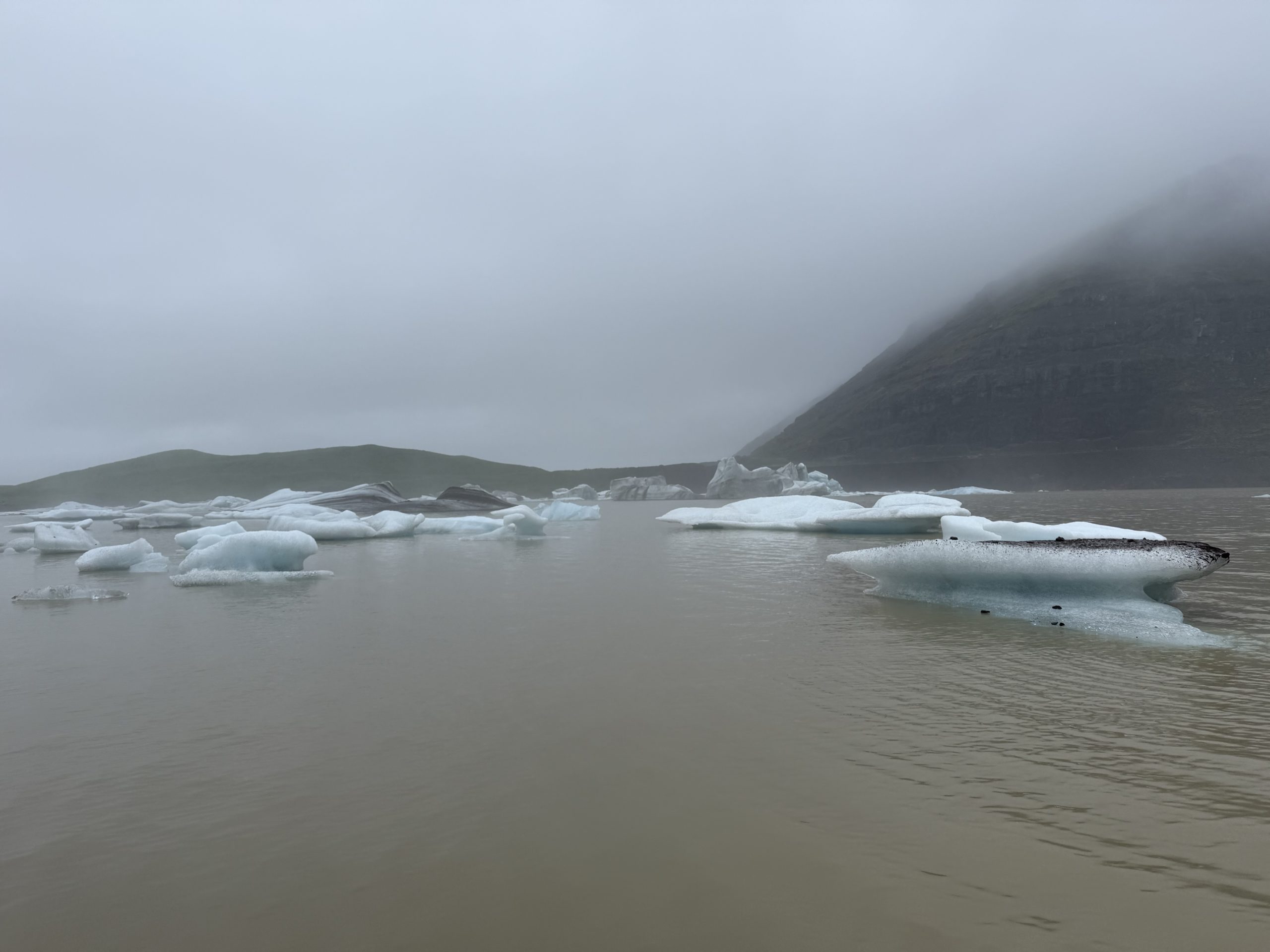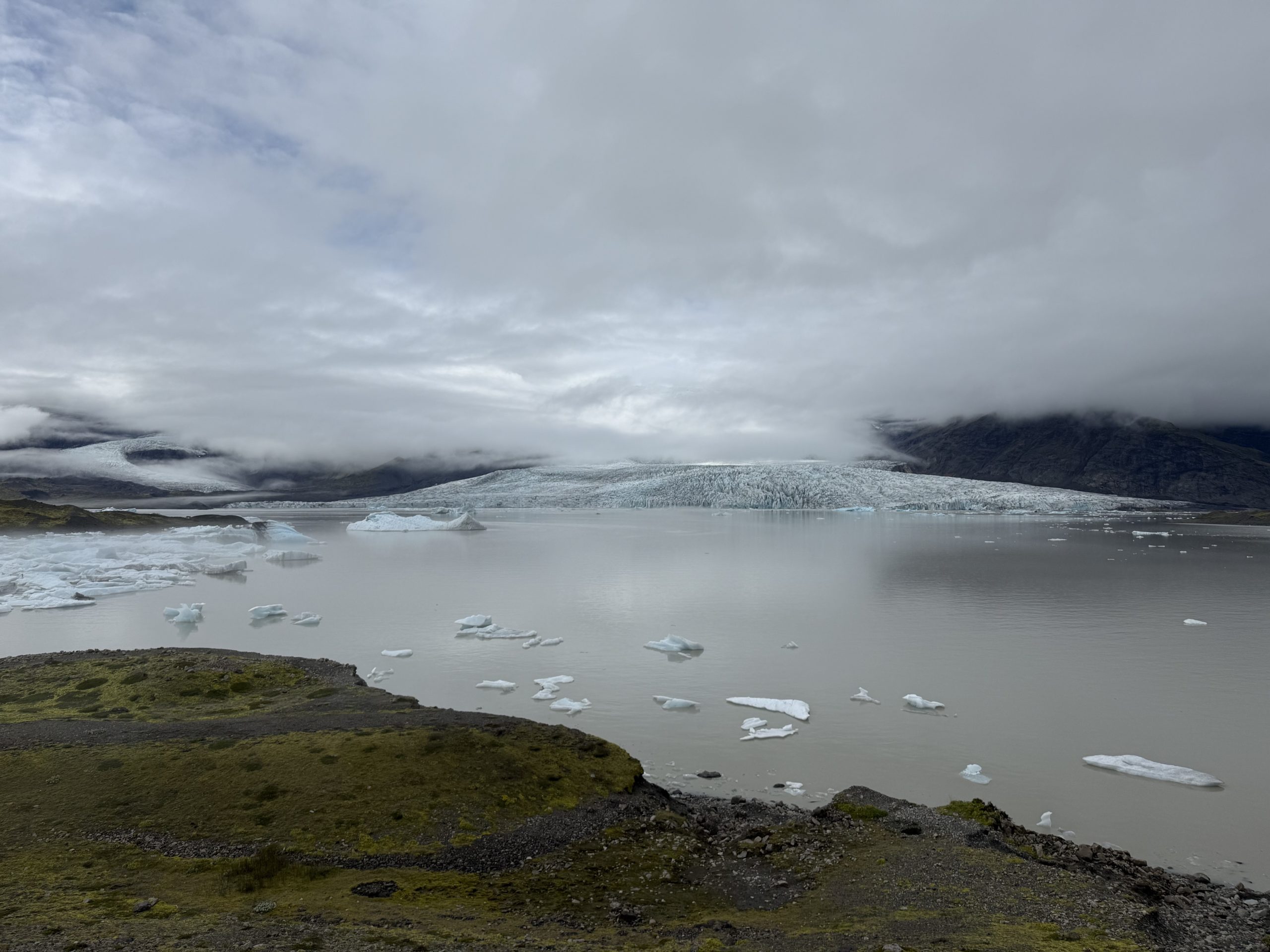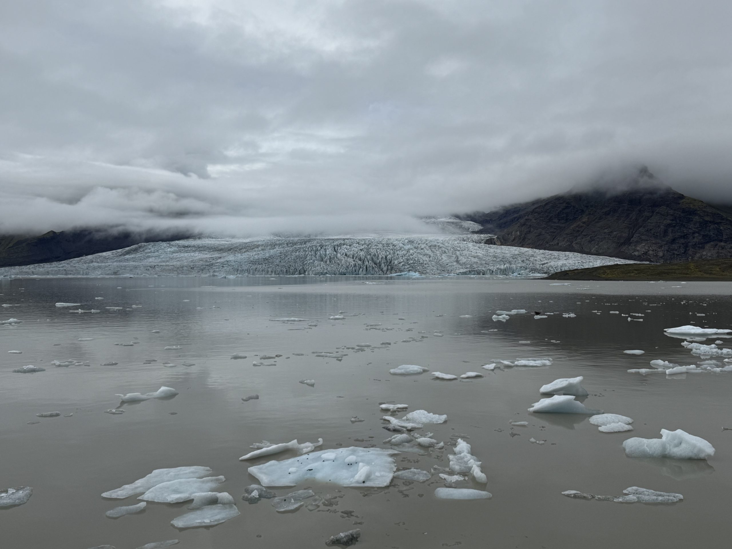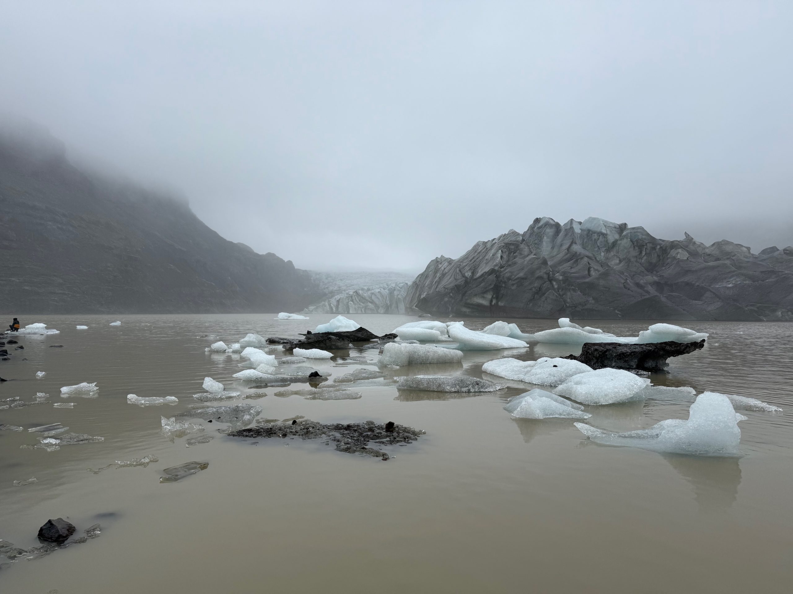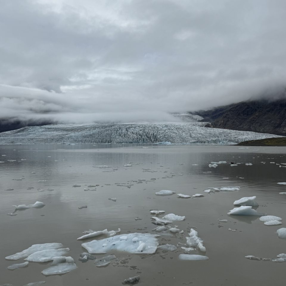Da wird es beim zweiten Stop schon spektakulärer. Ein kurzer Fußmarsch vom Parkplatz bringt mich zum Svinafellsjökul, einem Nebengletscher, der aber wunderschön in einen See bricht.
