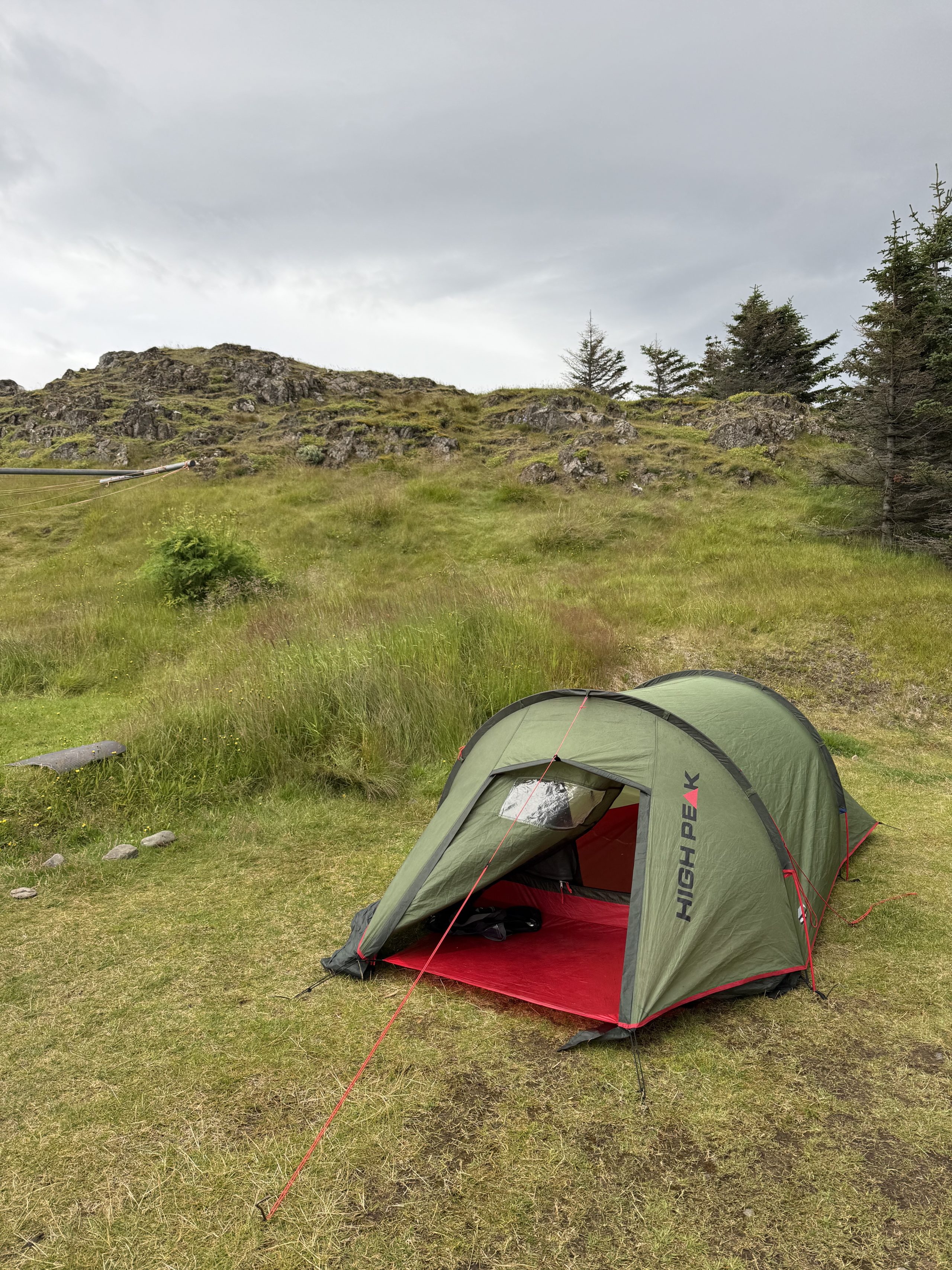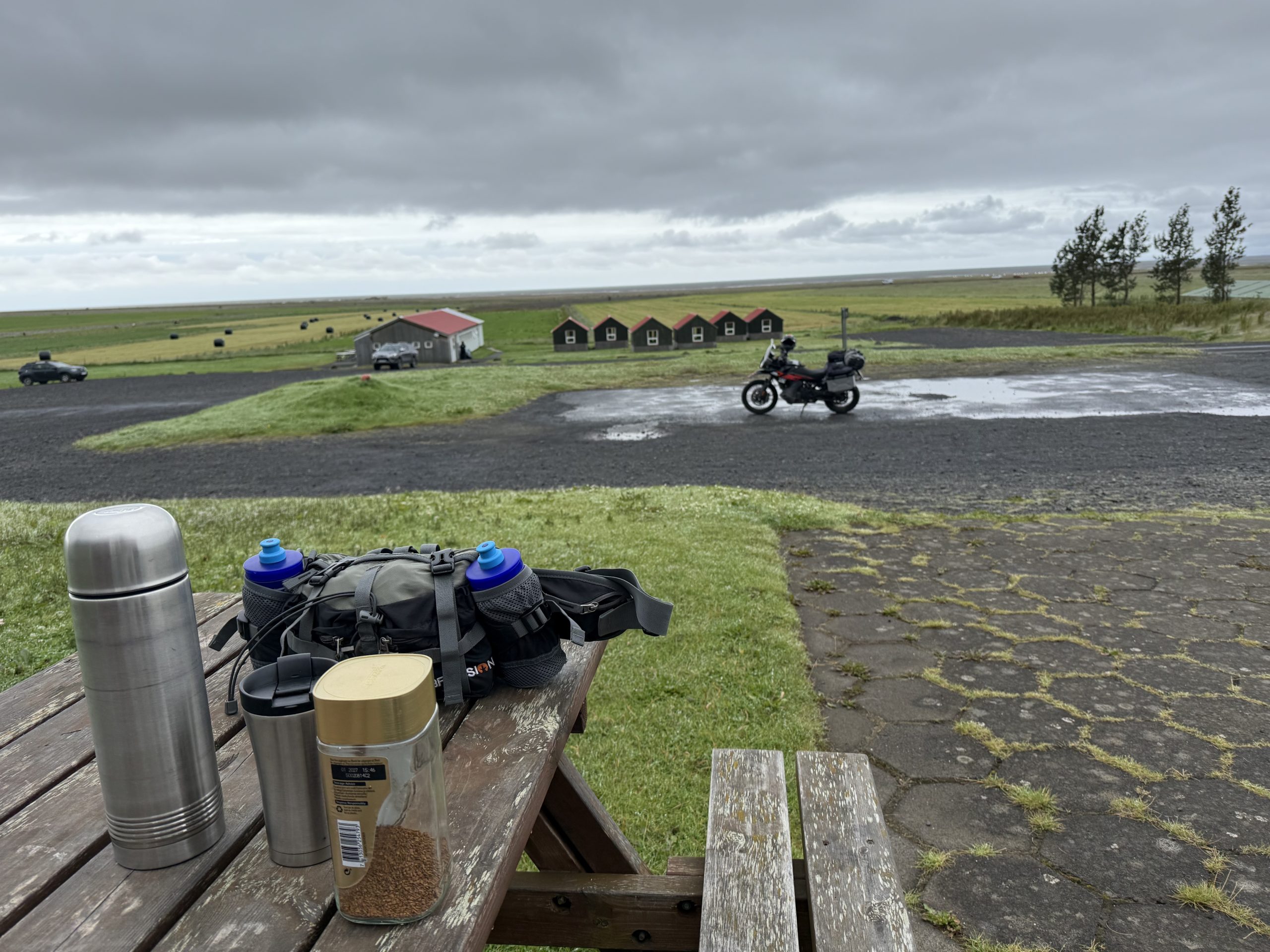 Es hat während der Nacht die meiste Zeit geregnet, aber jetzt scheint erst einmal Schluss zu sein.  Ich packe mein Zeug zusammen, genieße ein ausgiebiges Müslifrühstück und breche um 8 Uhr auf.