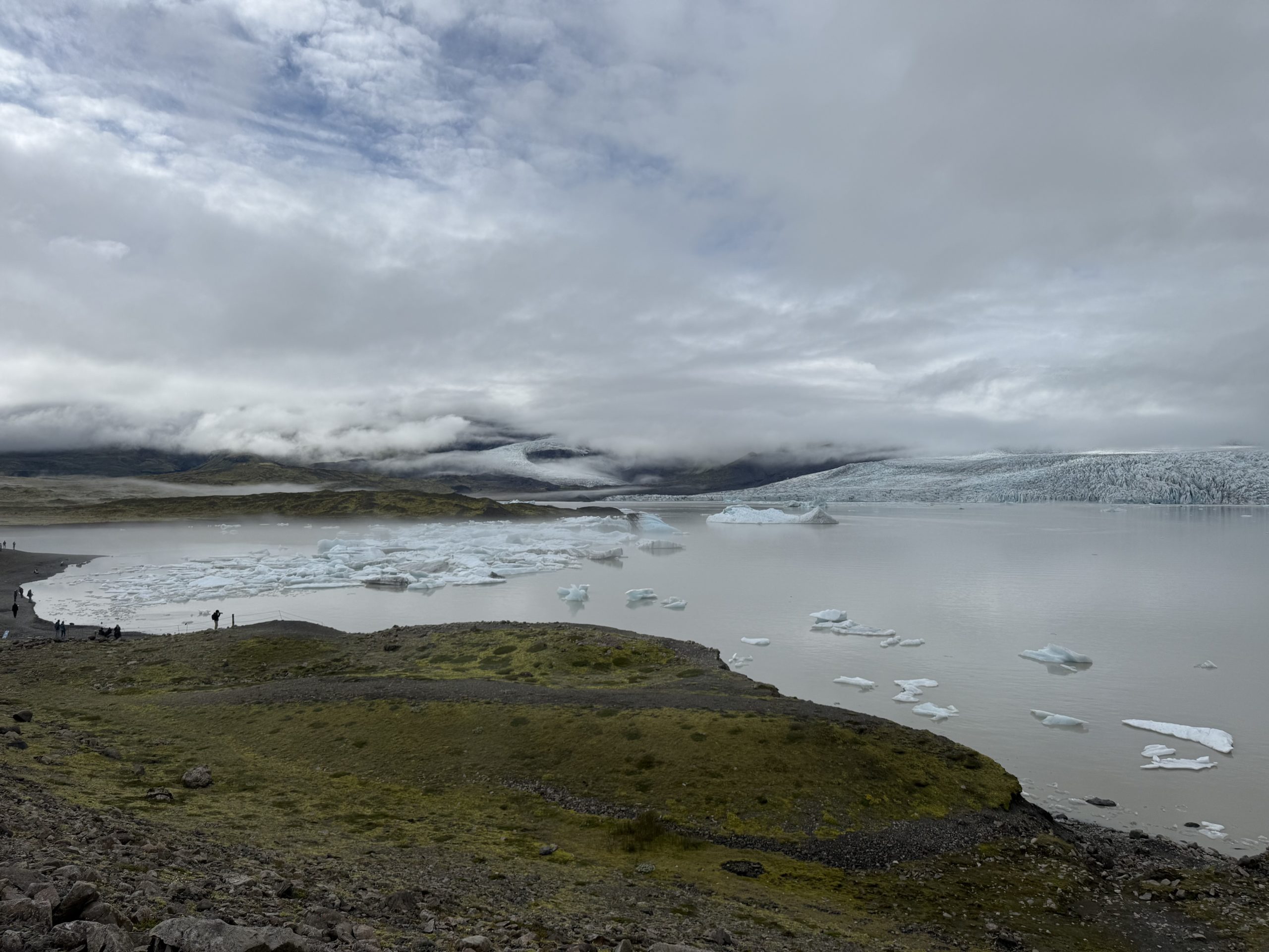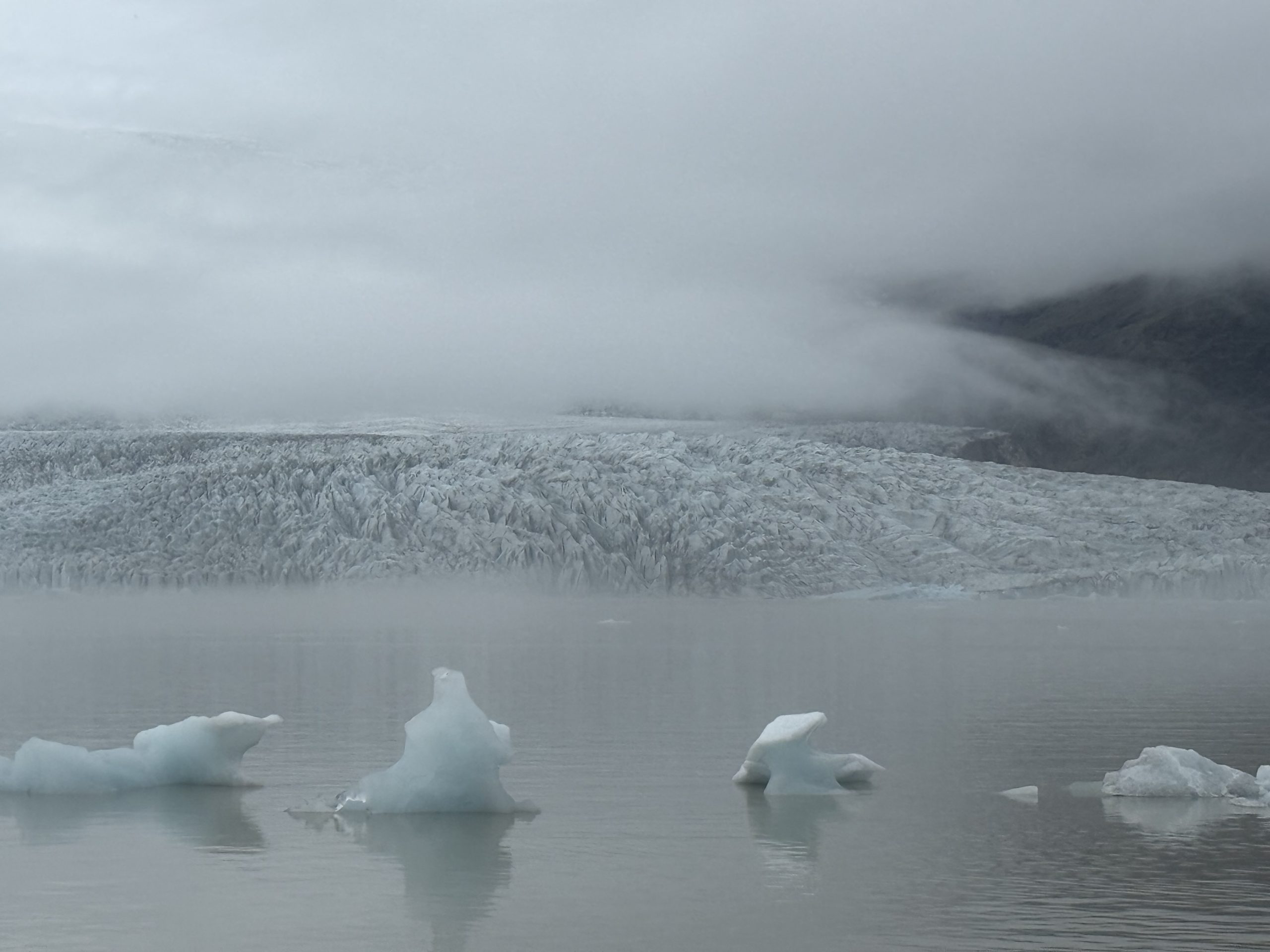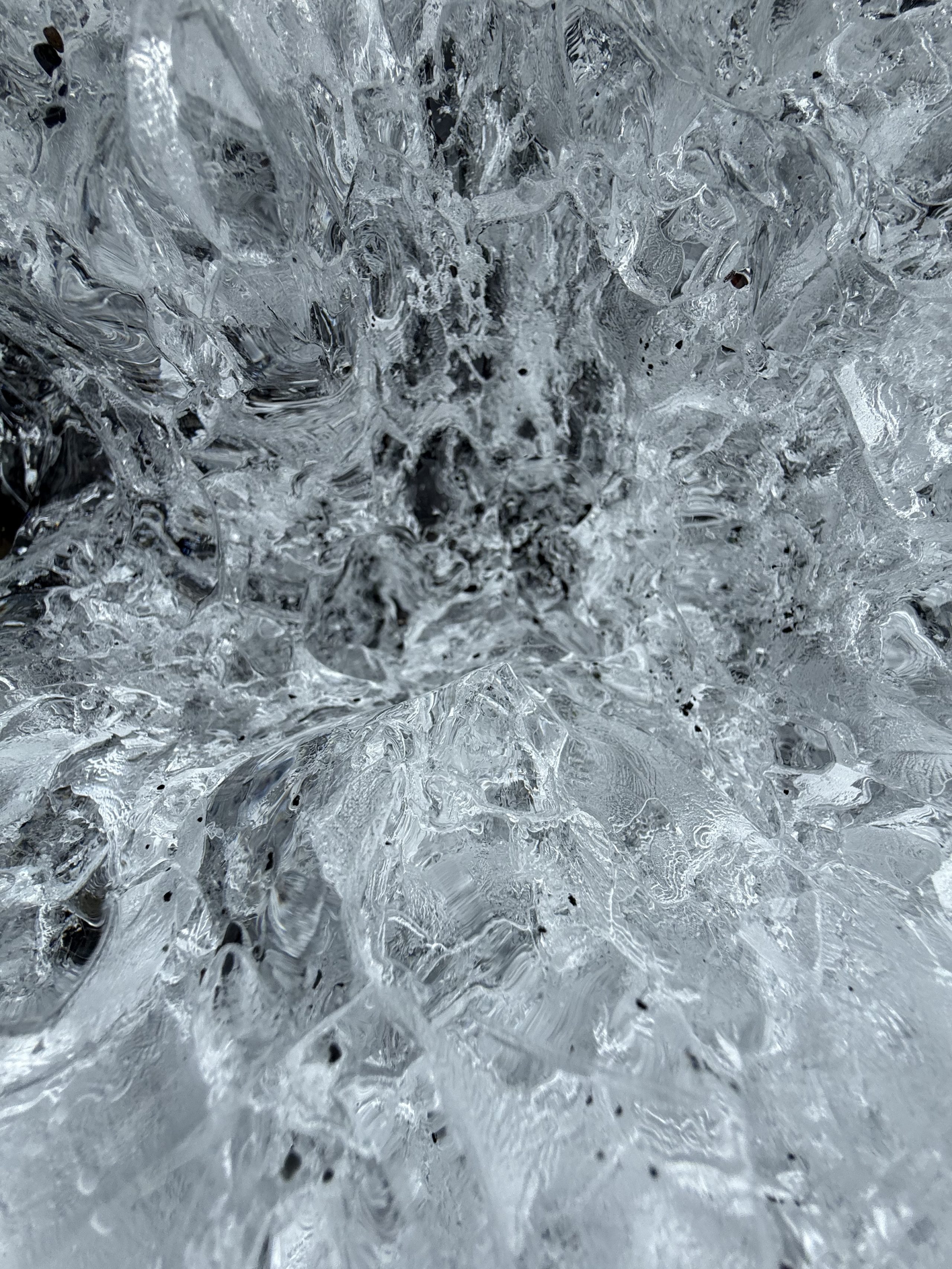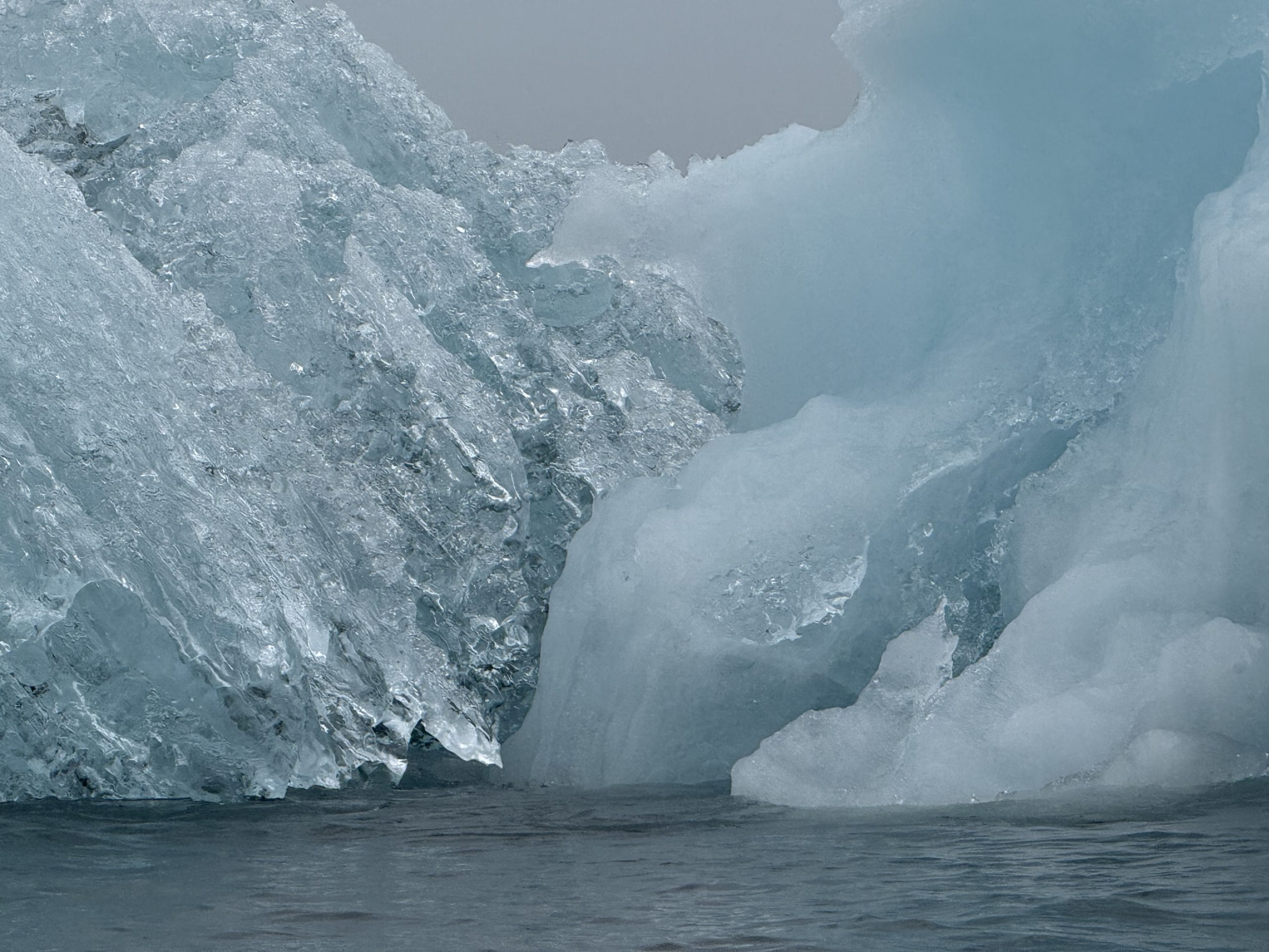 Nach einem kurzen Kaffeestopp geht es weiter zum Fjallsarlon See und dem dahinter liegenden Gletscher. Das Wetter klart ein wenig auf und so ist die Gletschwwerstruktur wunderschön sichtbar. Ein echt starkes Bild.