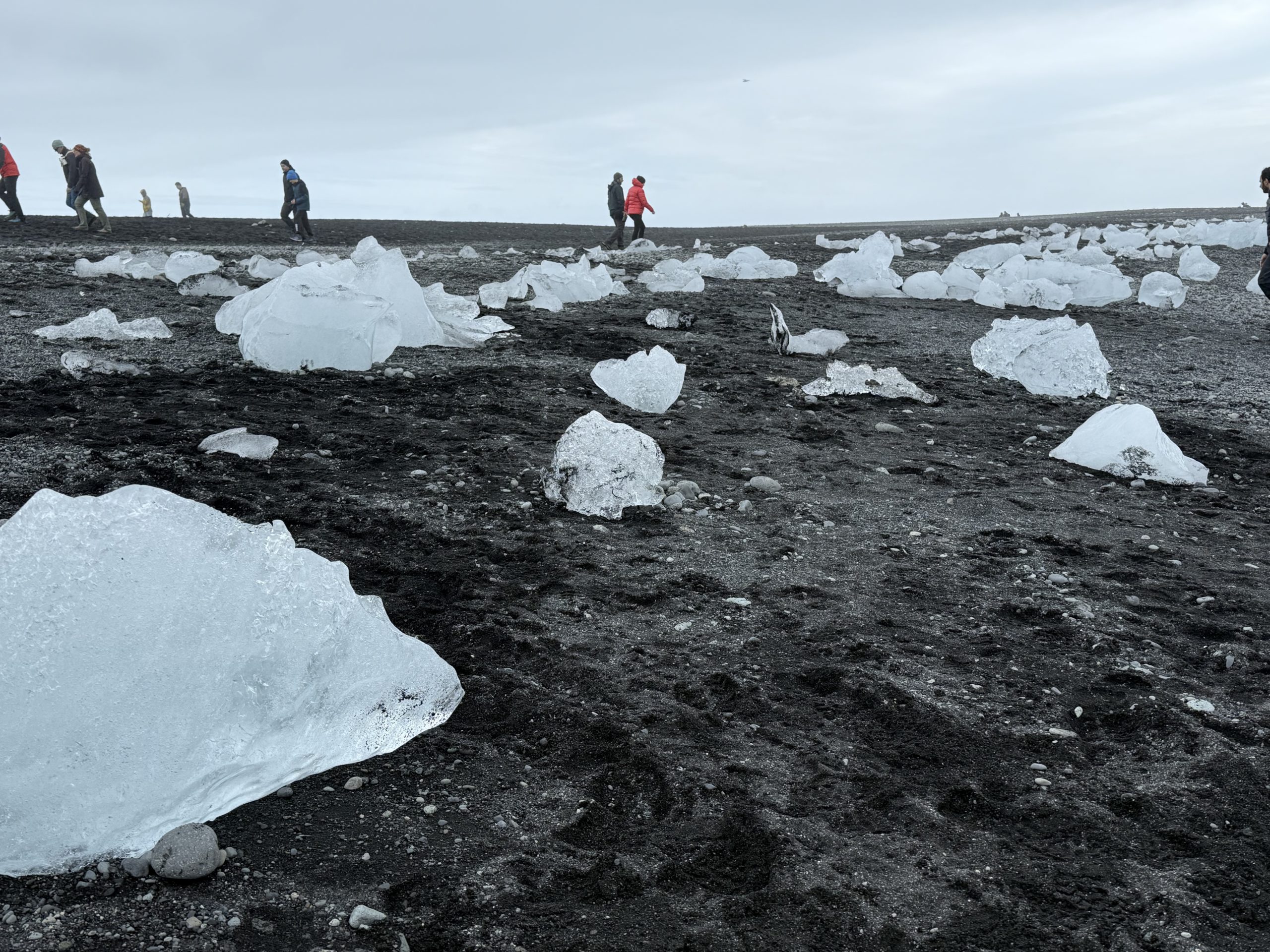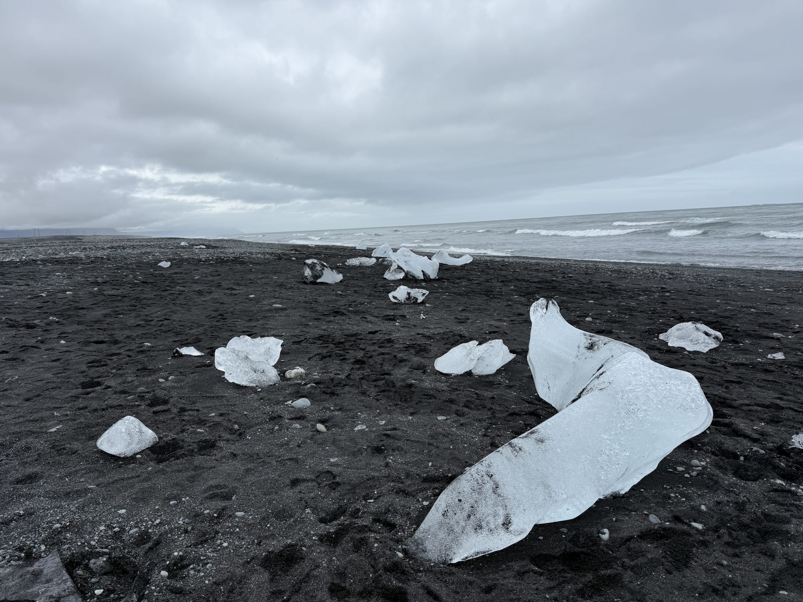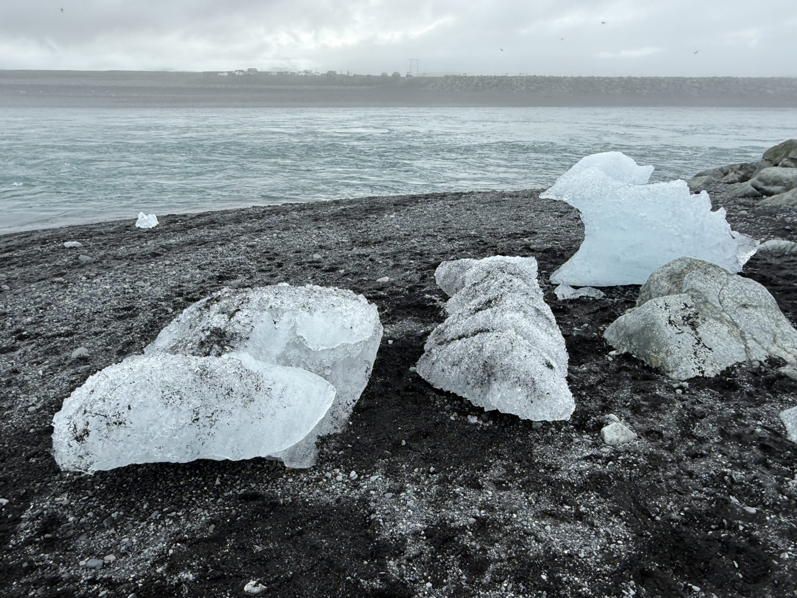 Nur wenige Kilometer weiter liegt der berühmte Diamond Beach. In die Lagune Jökulsarlon kalbt der Gletscher und die Eisberge driften dann in der starken Strömung ins Meer. Auf dem Weg dorthin werden viele kleinere Eisbrocken direkt an Land gespült und liegen dann wie funkelnde Diamanten auf dem schwarzen Sand. Natürlich ein Besuchermagnet mit entsprechend vielen Besuchern, aber trotzdem ein absolutes Highlight.