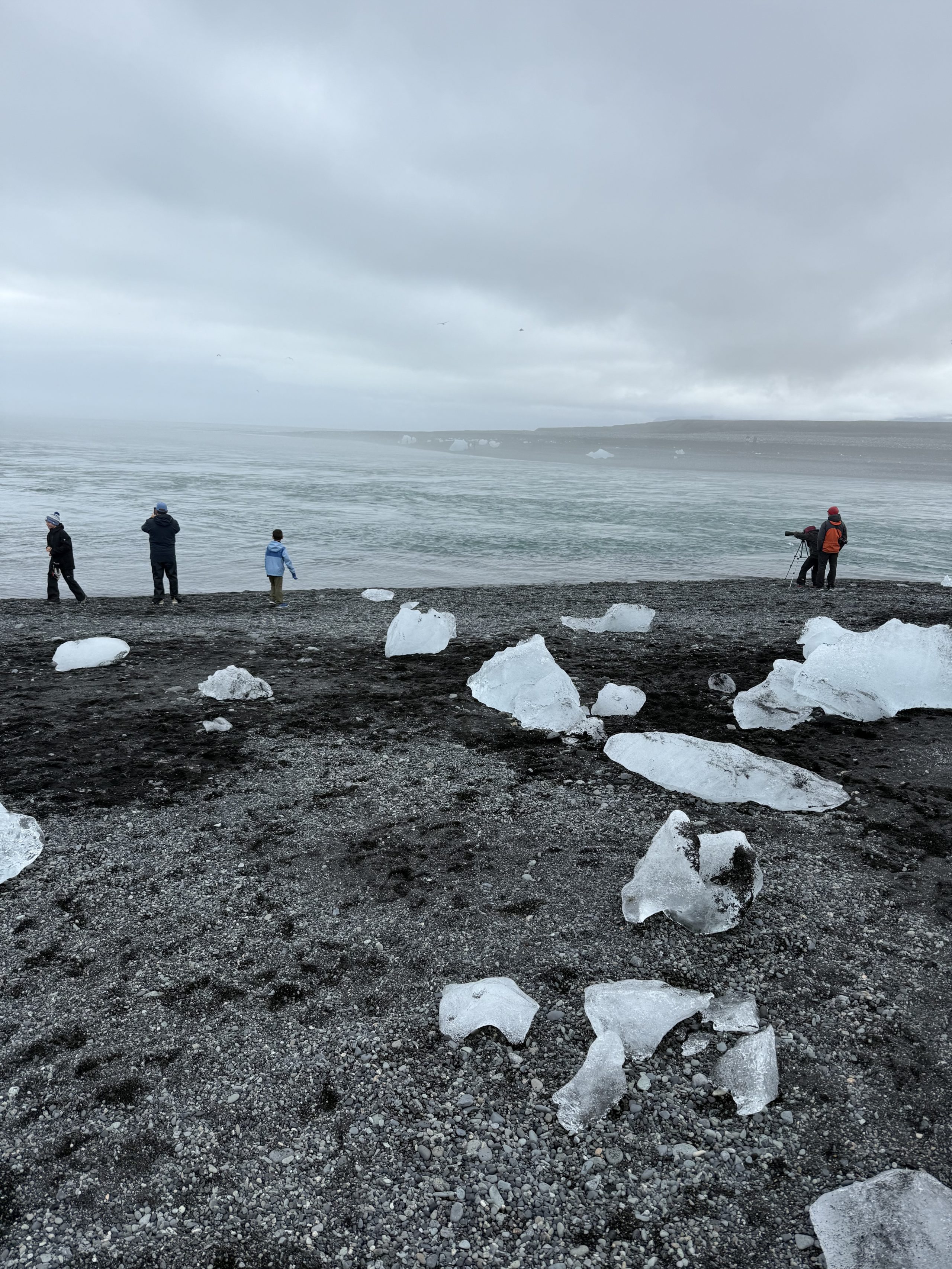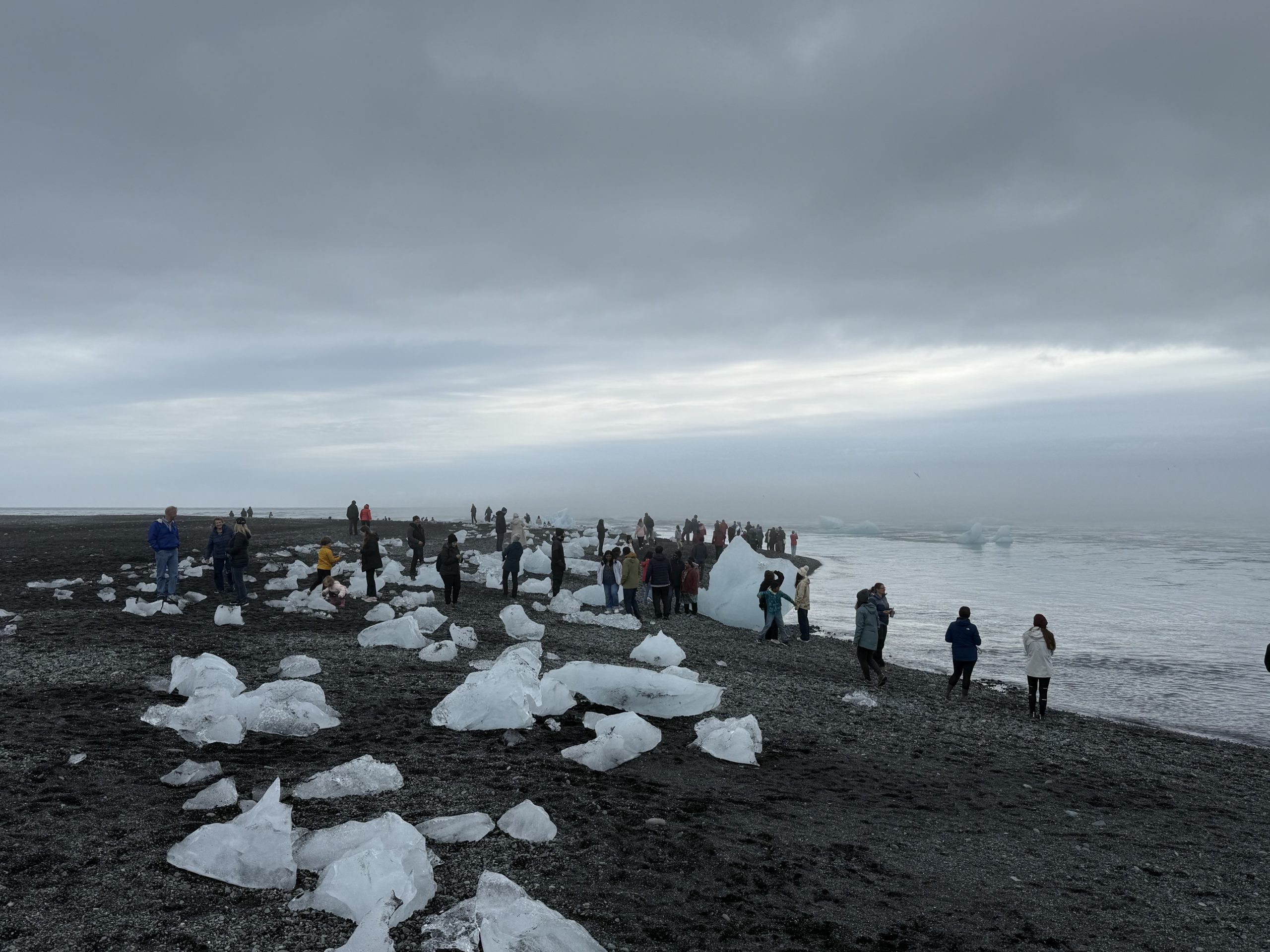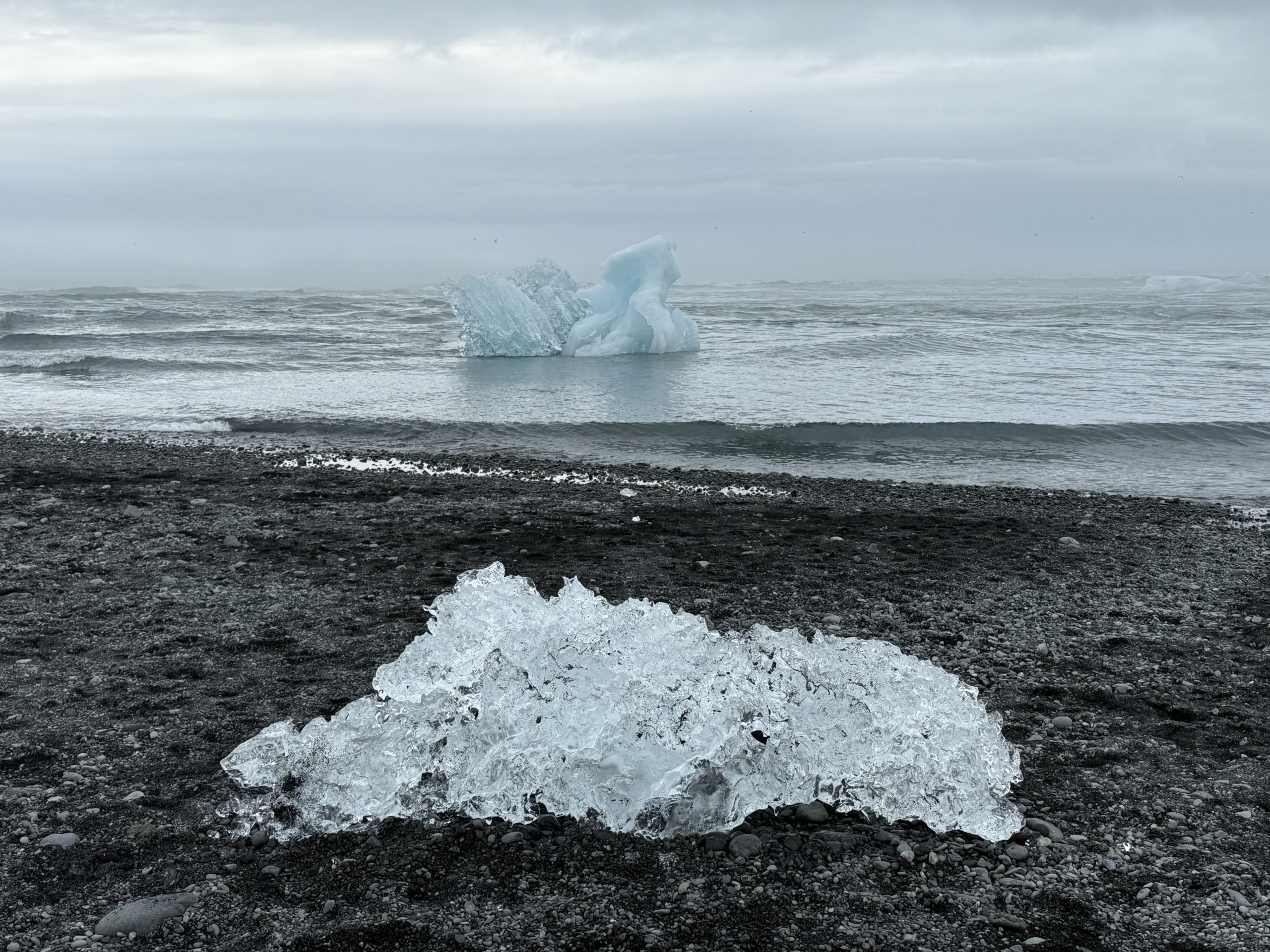 Nur wenige Kilometer weiter liegt der berühmte Diamond Beach. In die Lagune Jökulsarlon kalbt der Gletscher und die Eisberge driften dann in der starken Strömung ins Meer. Auf dem Weg dorthin werden viele kleinere Eisbrocken direkt an Land gespült und liegen dann wie funkelnde Diamanten auf dem schwarzen Sand. Natürlich ein Besuchermagnet mit entsprechend vielen Besuchern, aber trotzdem ein absolutes Highlight.