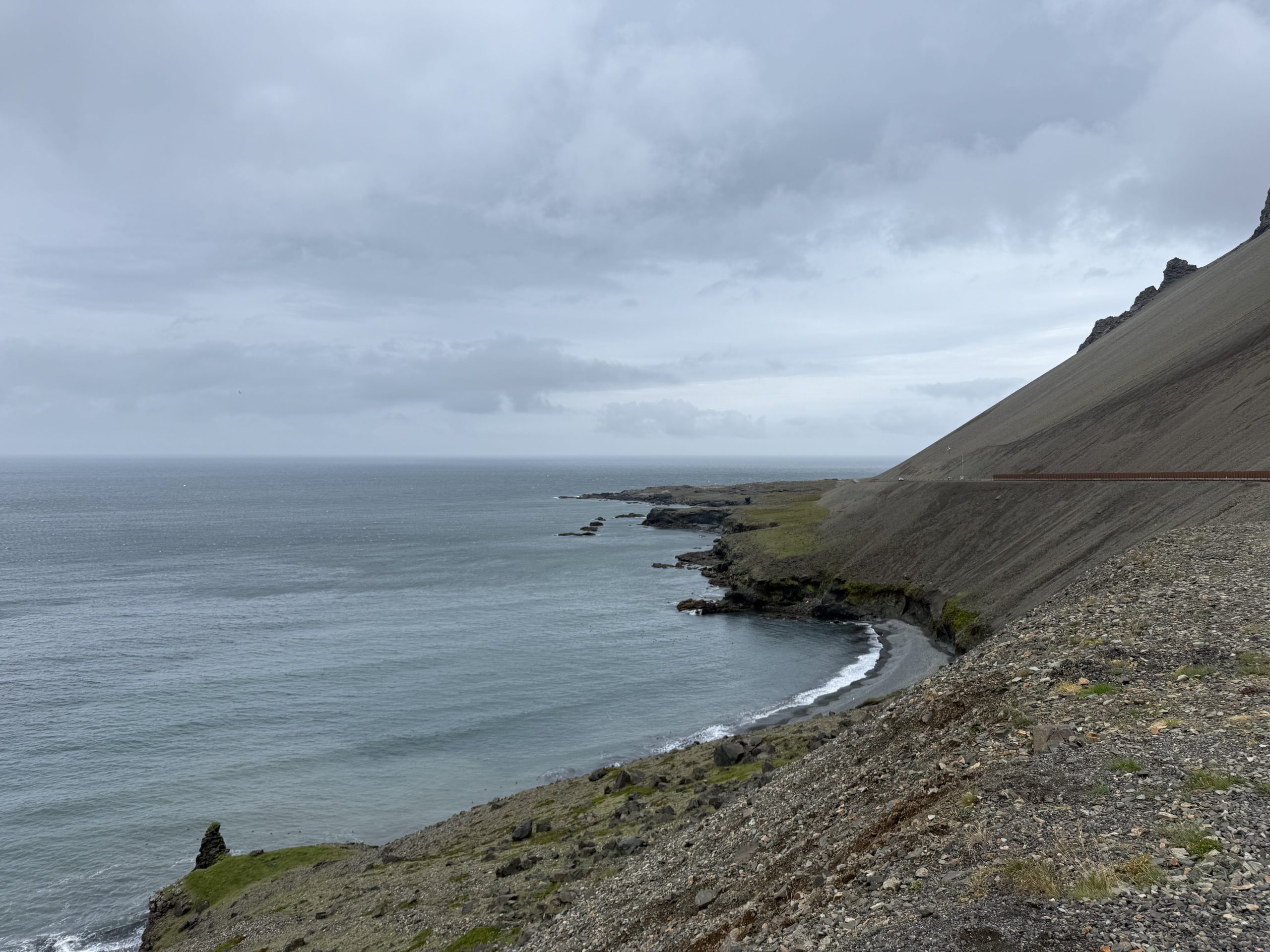 Eine kleine Rundtour in Höfn inklusive Hot Dog Stop tut ganz gut, um wieder aufzutauen. Heute hat es zwar auch 15 Grad, aber mit enormem Wind und relativ viel Nebel, ist mir heute tatsächlich ein wenig kalt. Ich spule noch rund 100 Kilometer bis Djupivogur ab. Die Fahrt unterbreche ich nur einmal für ein Küstenphoto. Insgesamt ist die Küstenstraße zwar schön, aber bei weitem nicht so spektakulär wie die Westfjorde oder Snaefellsness.
